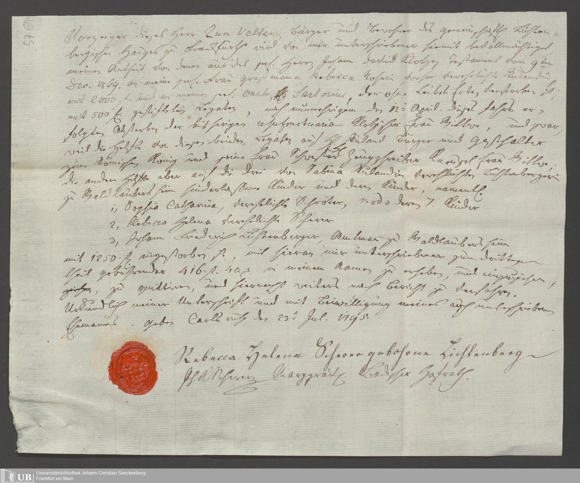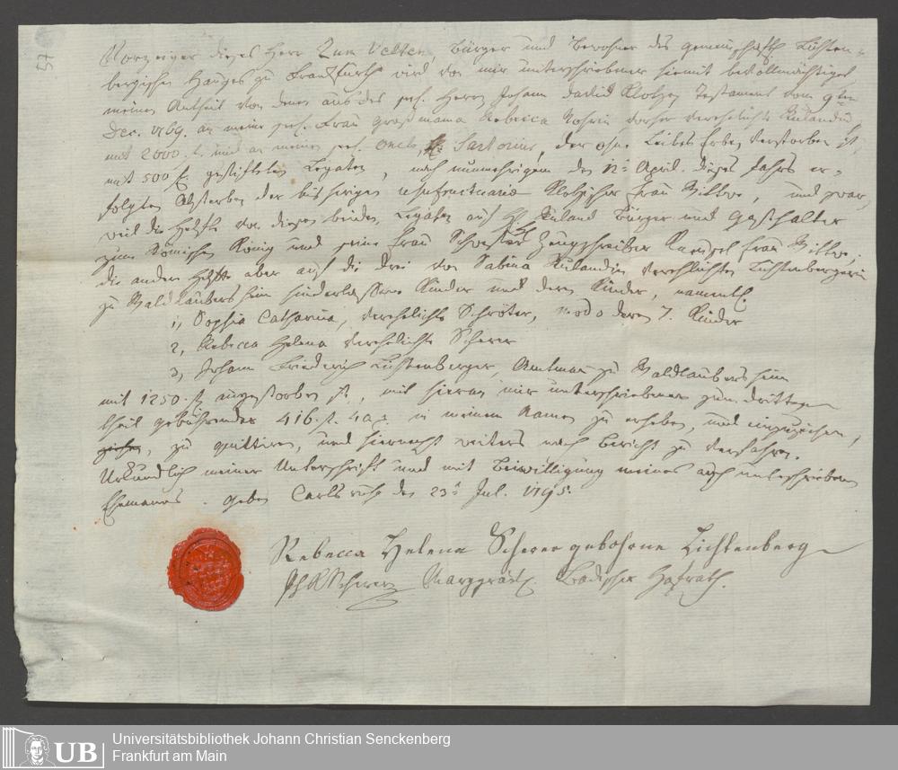B 5 Dr. Senckenbergische Stiftung, 87 - zum Testament Anna Elisabeth Klotz