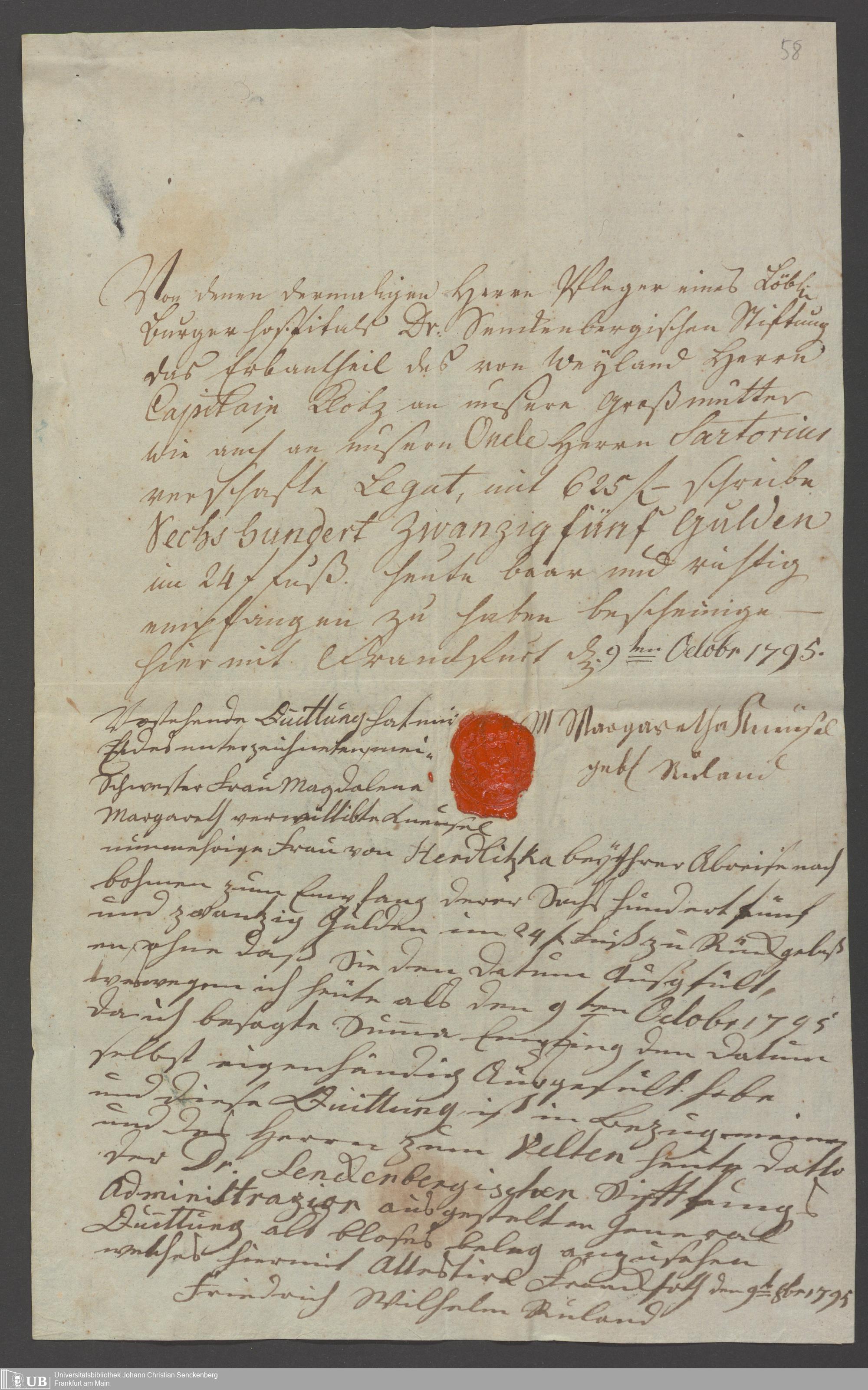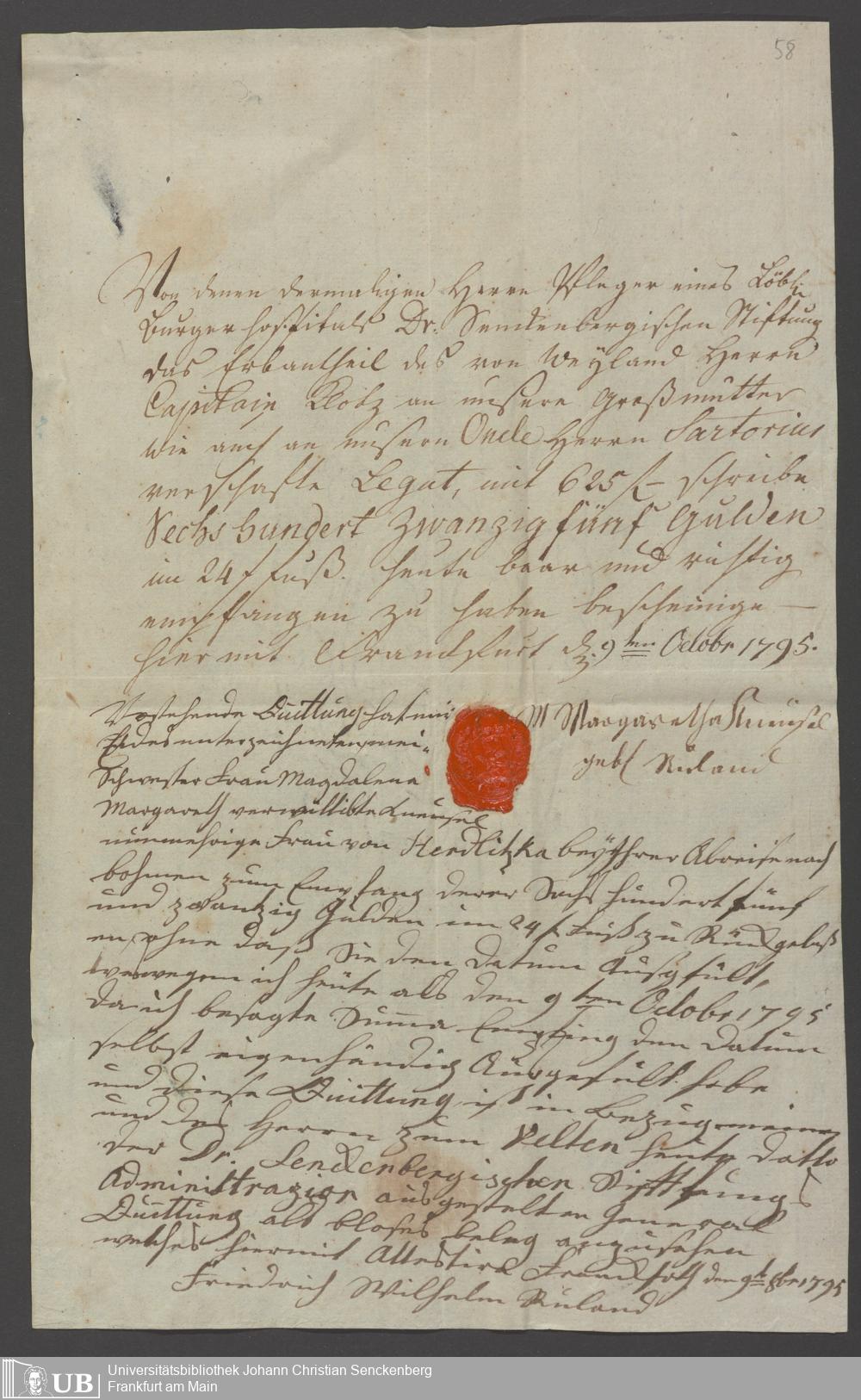 B 5 Dr. Senckenbergische Stiftung, 87 - zum Testament Anna Elisabeth Klotz