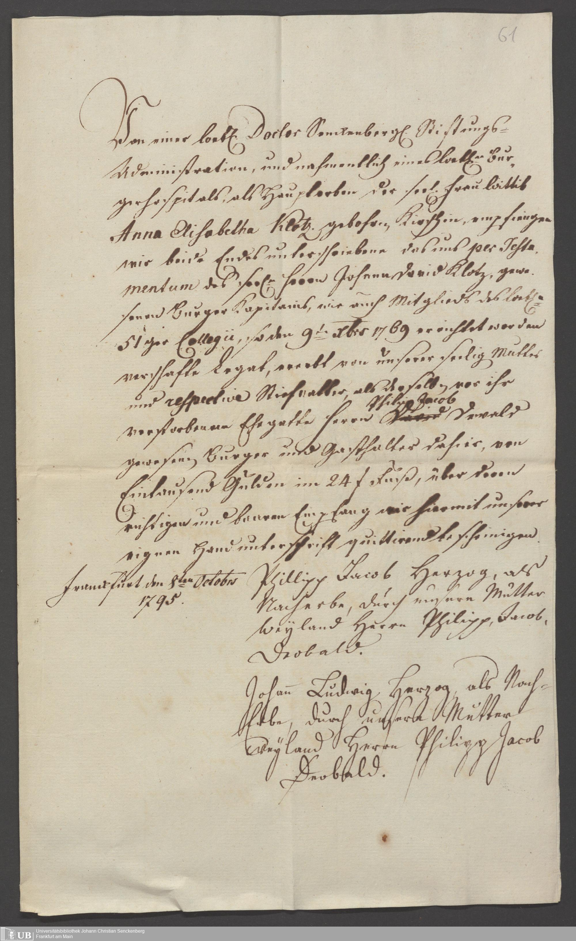 B 5 Dr. Senckenbergische Stiftung, 87 - zum Testament Anna Elisabeth Klotz