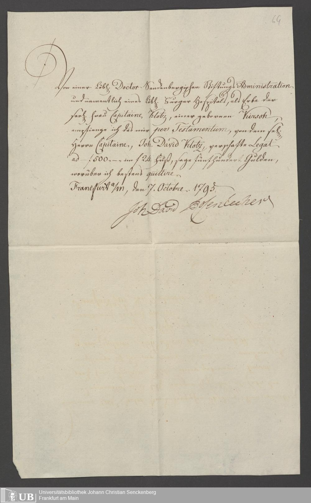 B 5 Dr. Senckenbergische Stiftung, 87 - zum Testament Anna Elisabeth Klotz