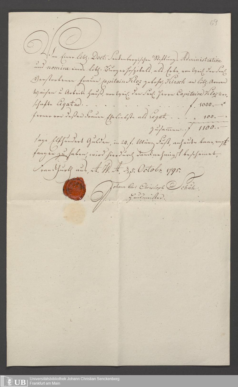 B 5 Dr. Senckenbergische Stiftung, 87 - zum Testament Anna Elisabeth Klotz