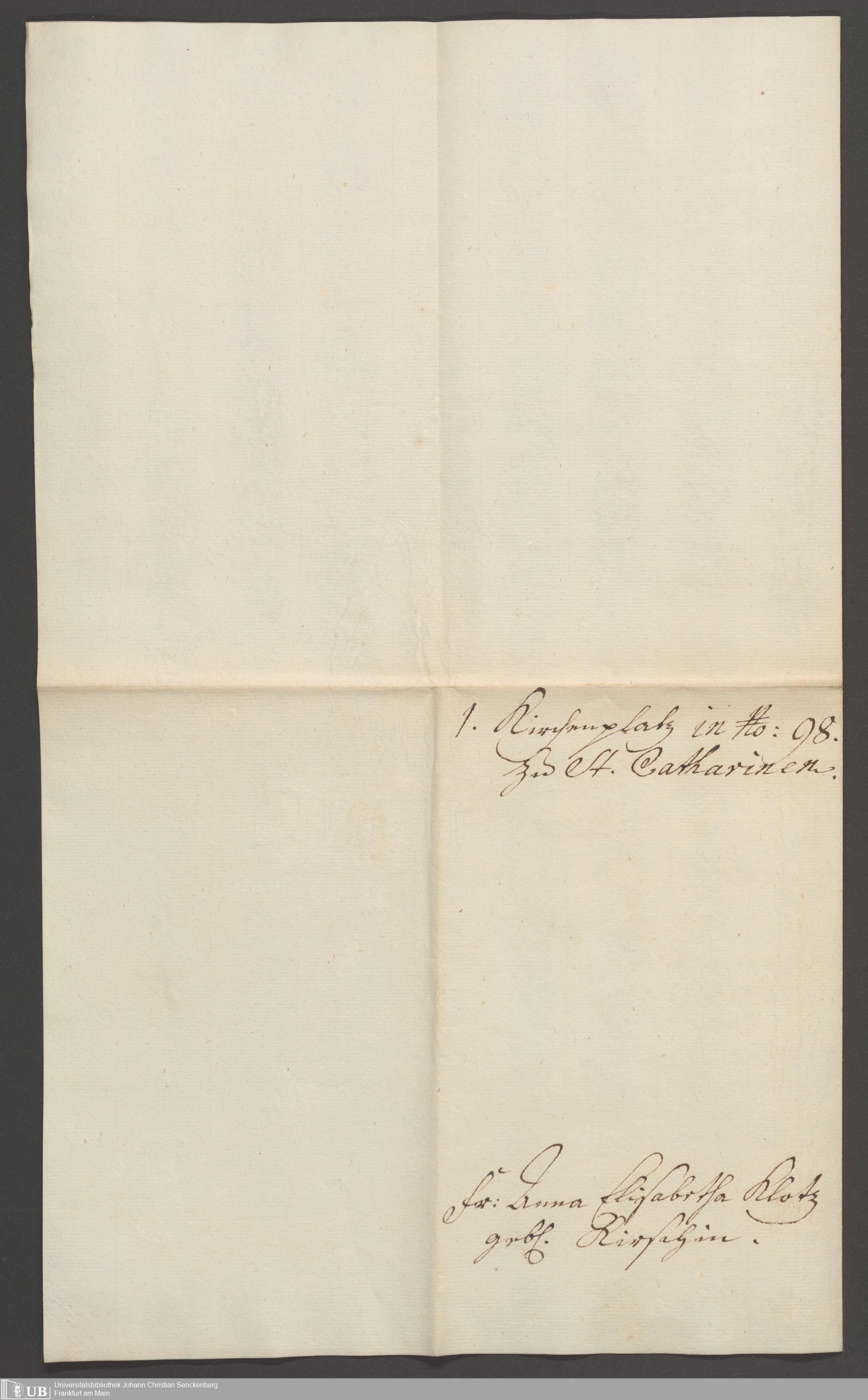 B 5 Dr. Senckenbergische Stiftung, 87 - zum Testament Anna Elisabeth Klotz