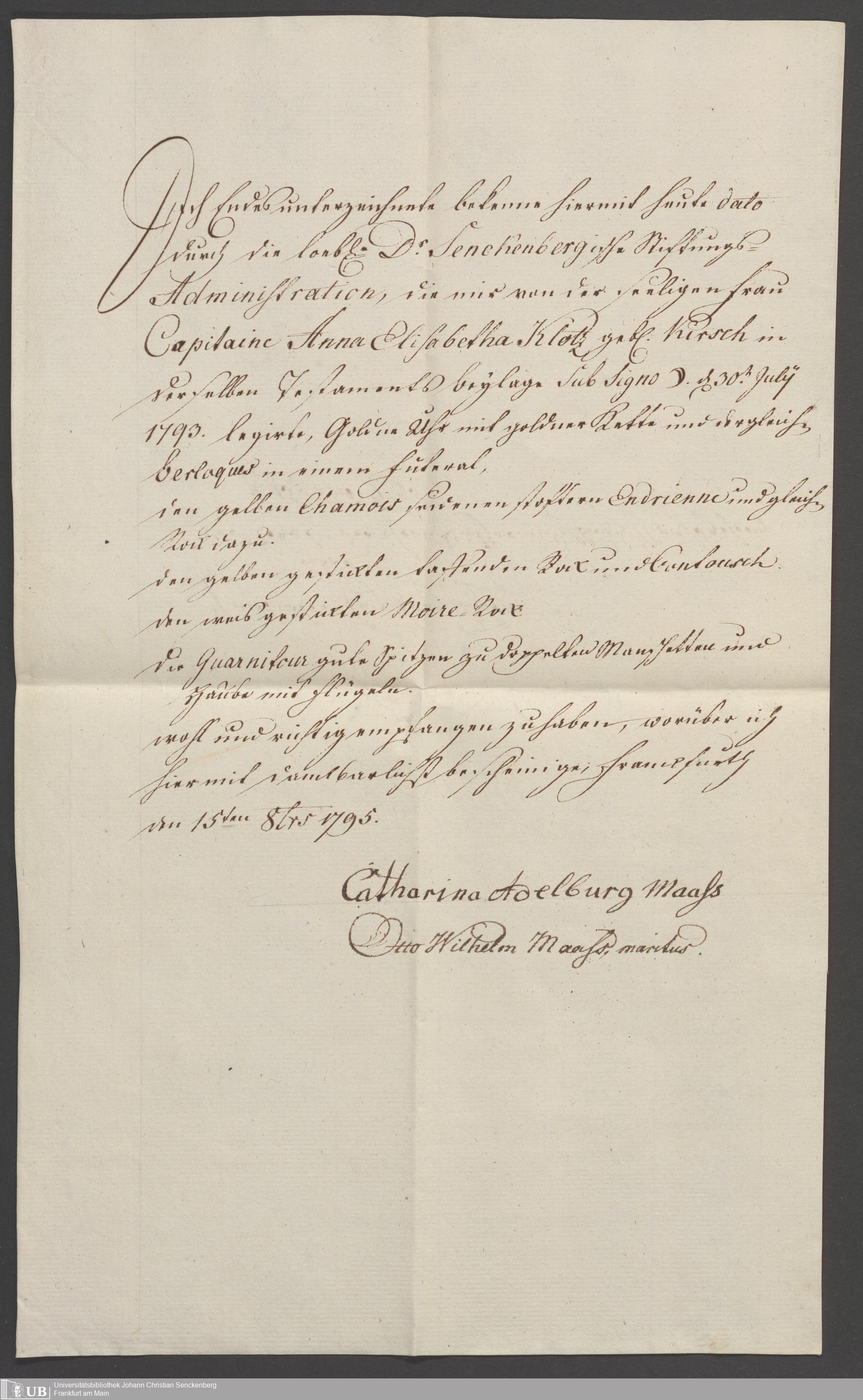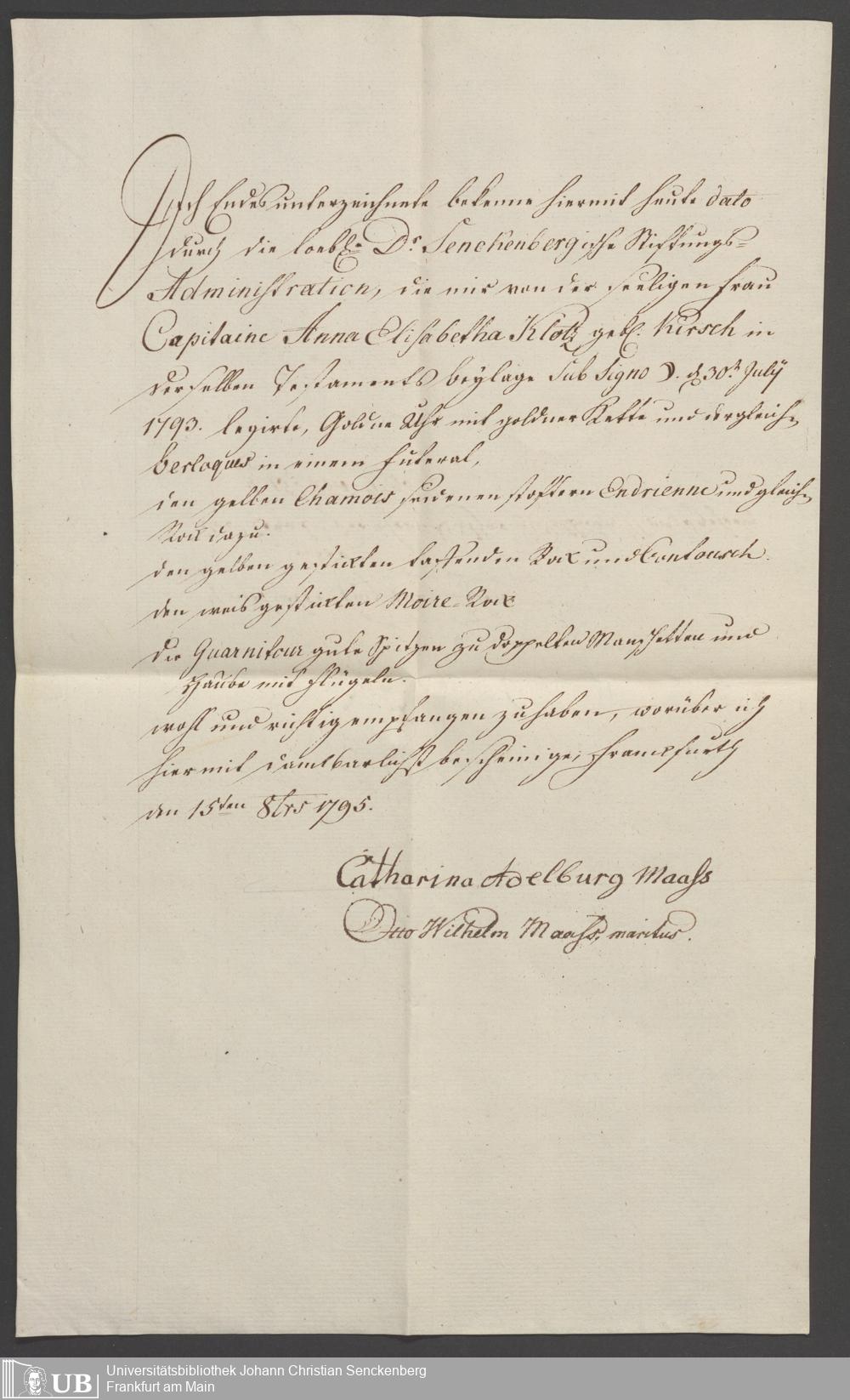 B 5 Dr. Senckenbergische Stiftung, 87 - zum Testament Anna Elisabeth Klotz
