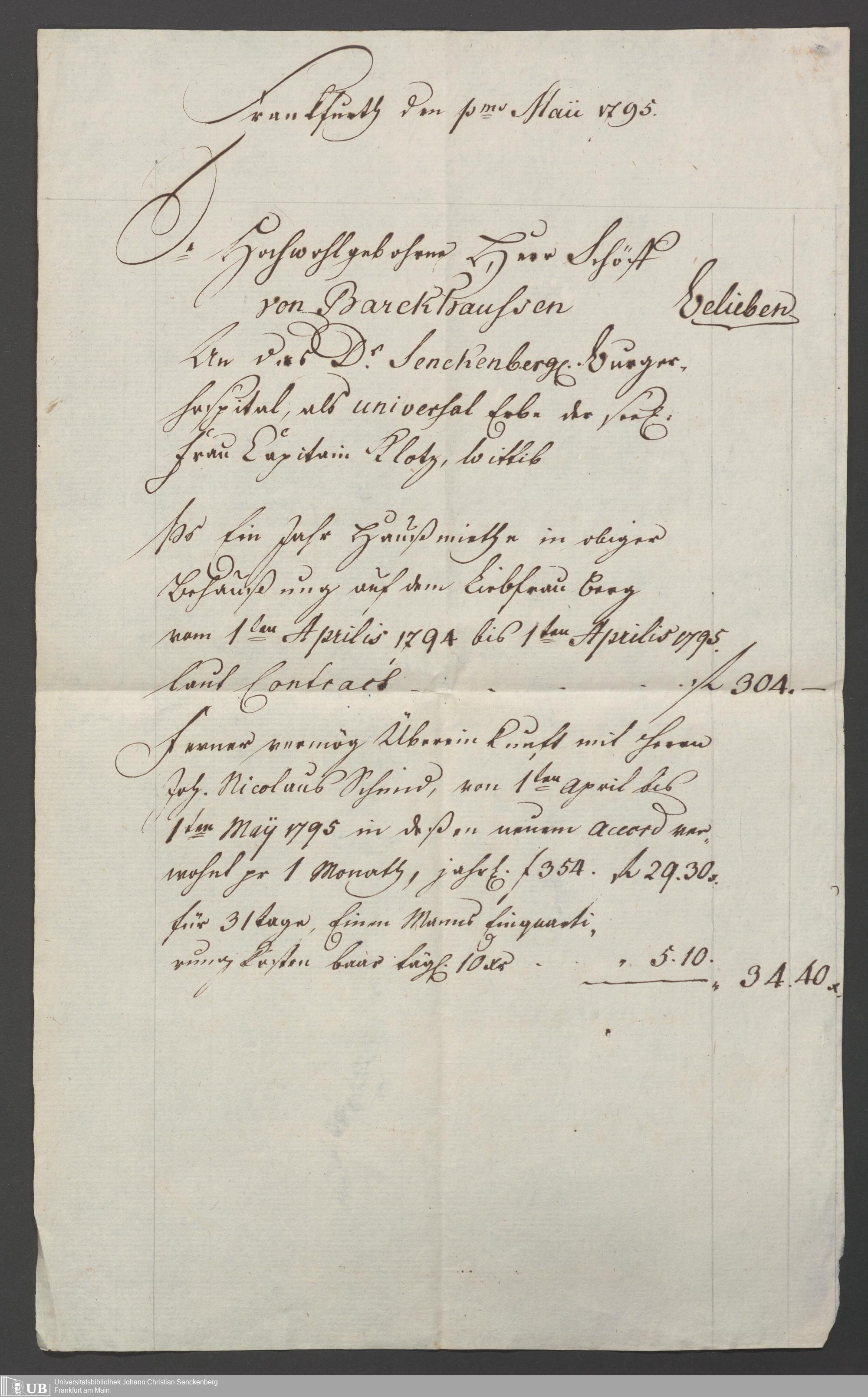 B 5 Dr. Senckenbergische Stiftung, 87 - zum Testament Anna Elisabeth Klotz