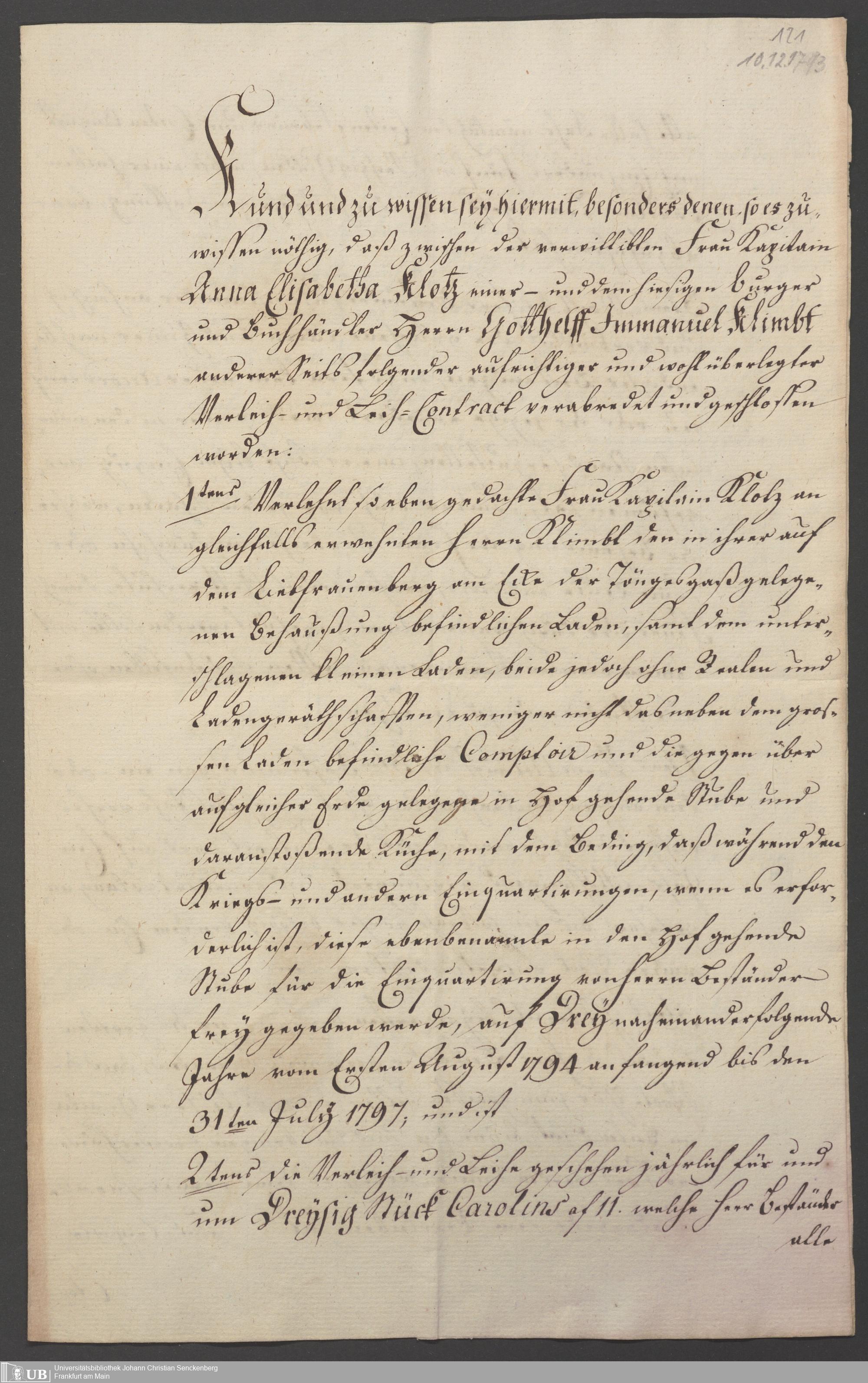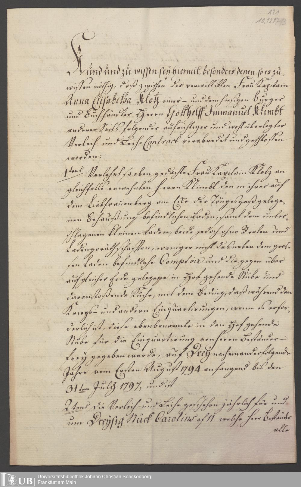 B 5 Dr. Senckenbergische Stiftung, 87 - zum Testament Anna Elisabeth Klotz