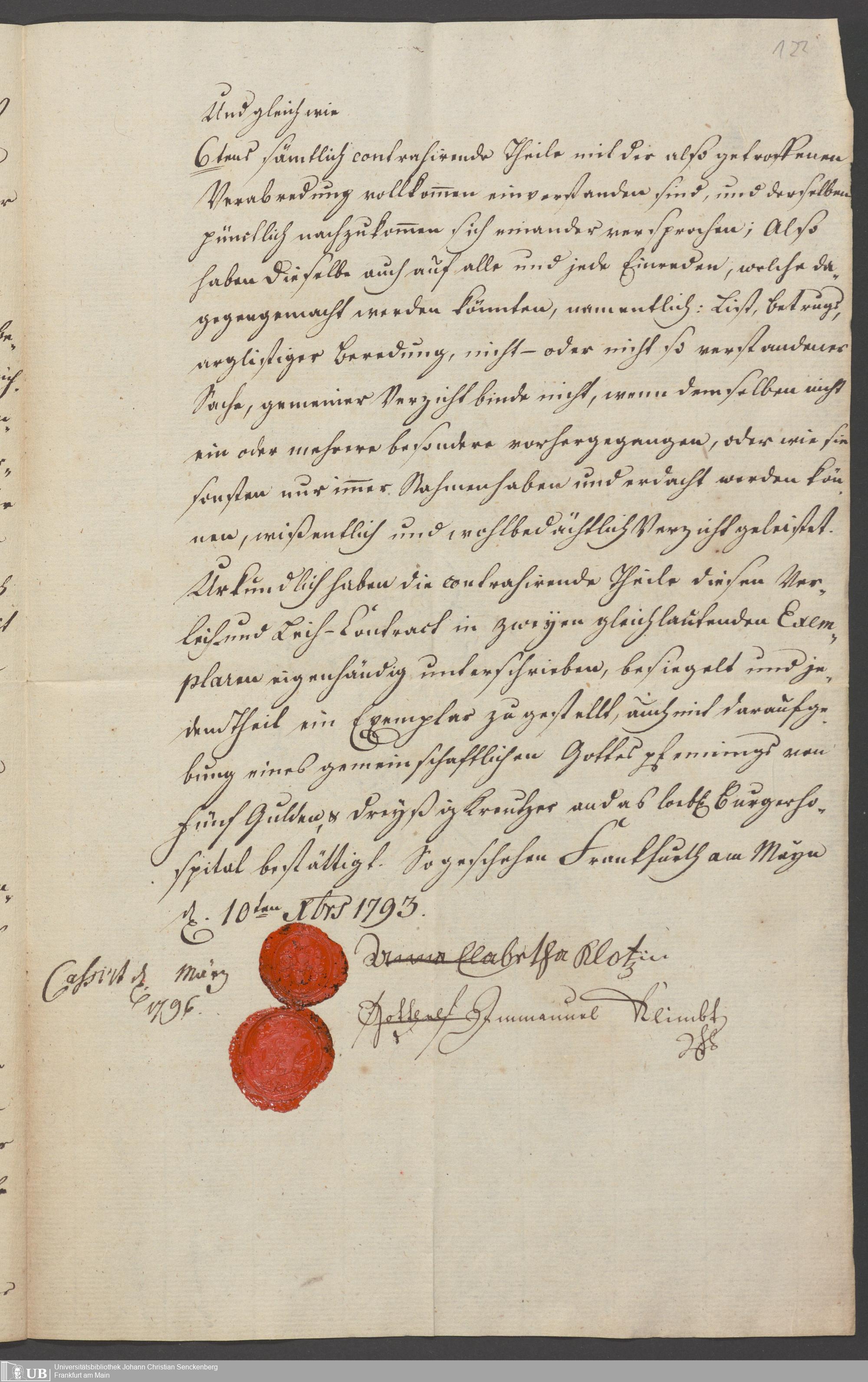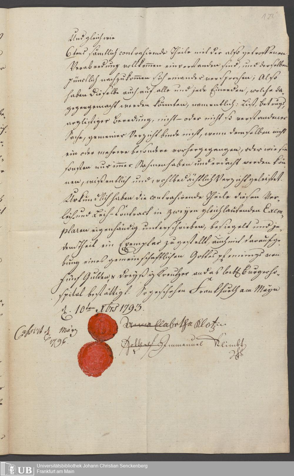 B 5 Dr. Senckenbergische Stiftung, 87 - zum Testament Anna Elisabeth Klotz