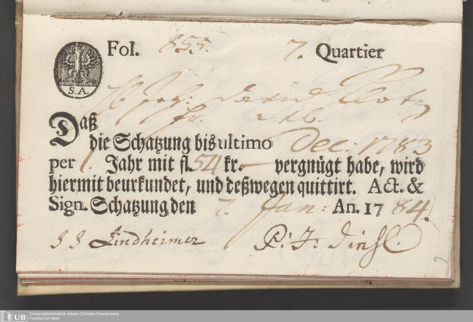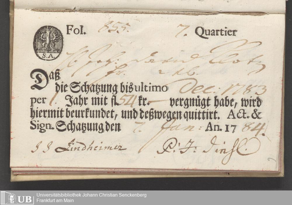 B 5 Dr. Senckenbergische Stiftung, 88 - zum Testament Anna Elisabeth Klotz