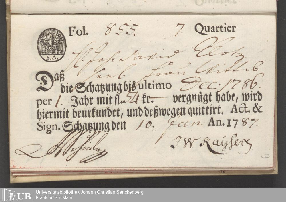 B 5 Dr. Senckenbergische Stiftung, 88 - zum Testament Anna Elisabeth Klotz