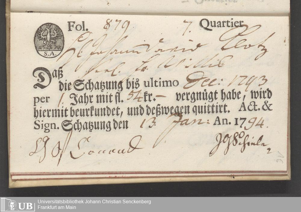 B 5 Dr. Senckenbergische Stiftung, 88 - zum Testament Anna Elisabeth Klotz