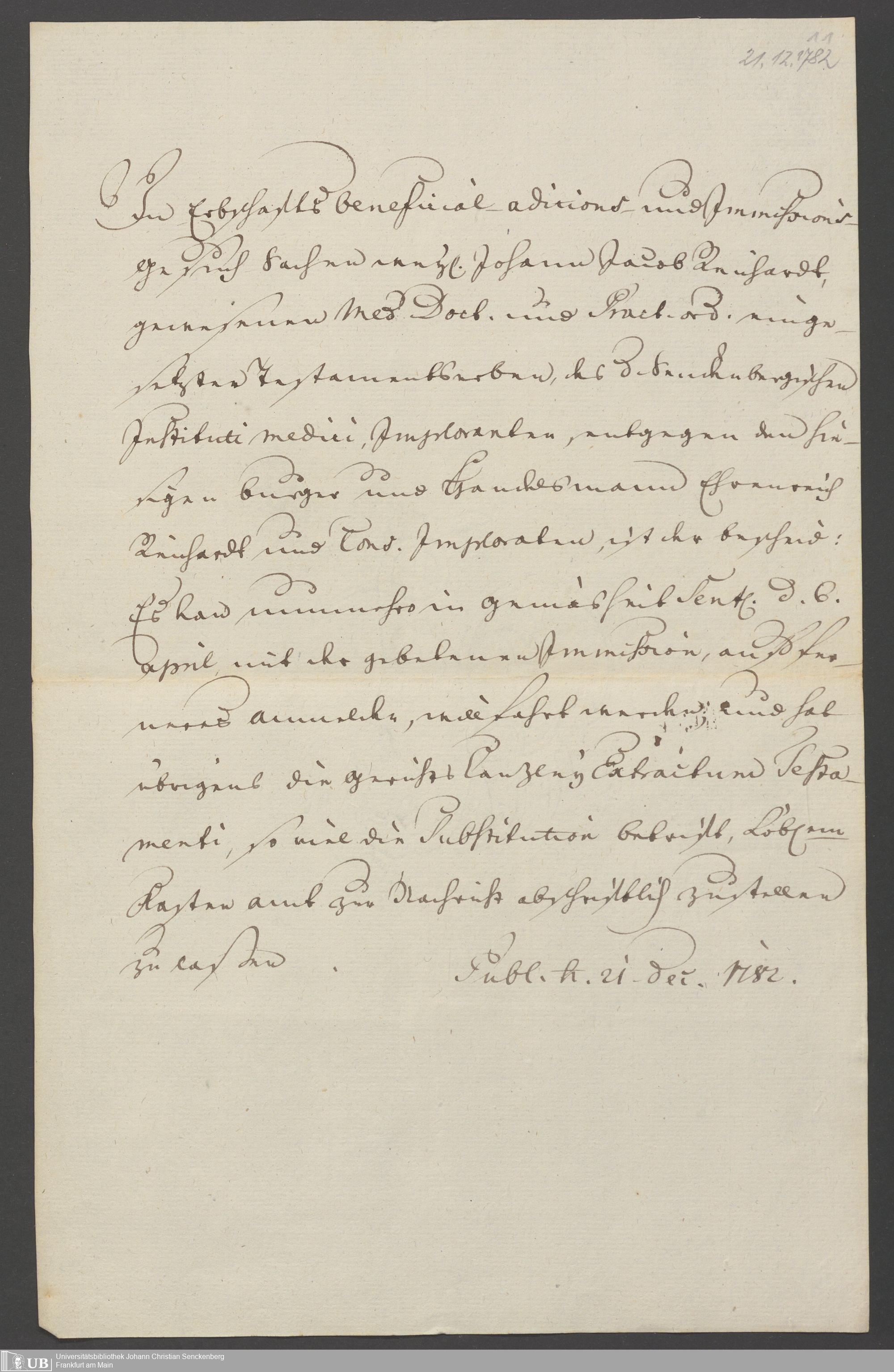 B 5 Dr. Senckenbergische Stiftung, 90 - Vermächtnisakten Dr. Johann Jakob Reichard