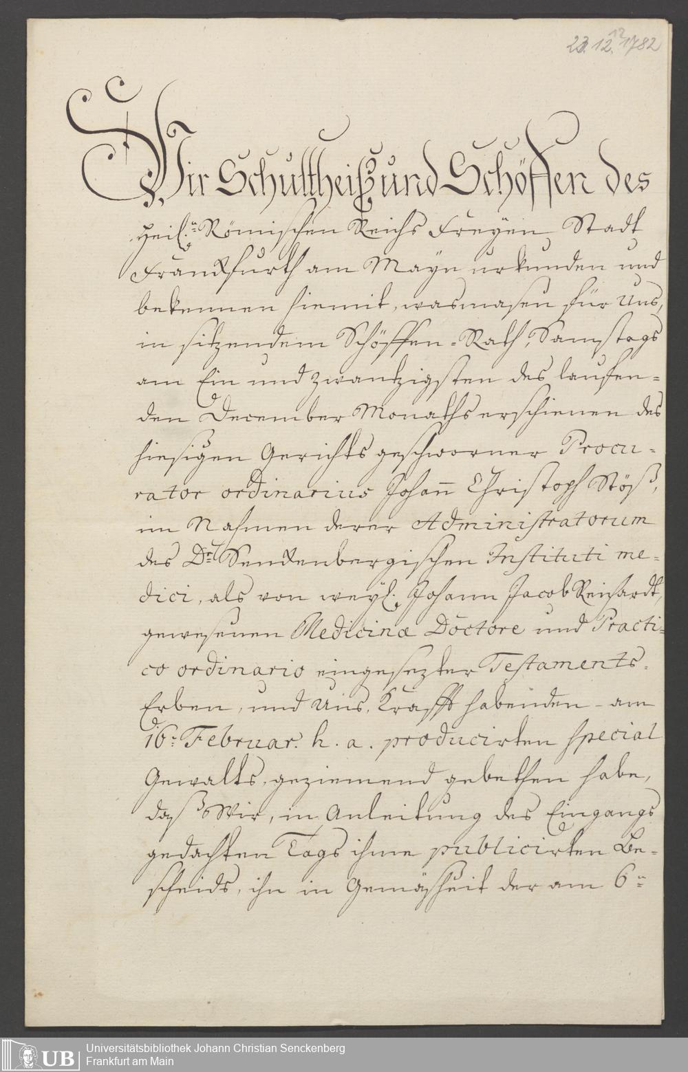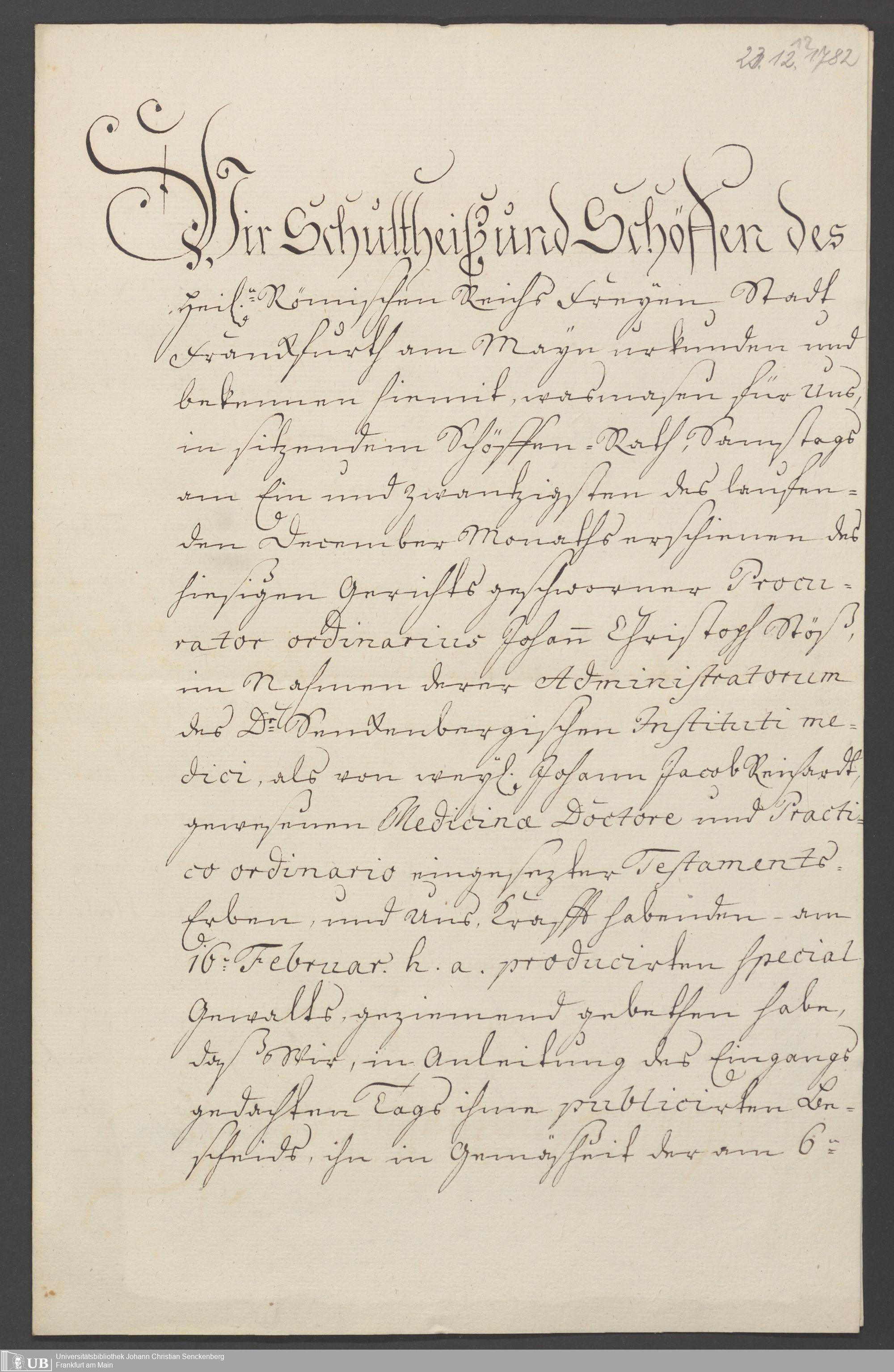 B 5 Dr. Senckenbergische Stiftung, 90 - Vermächtnisakten Dr. Johann Jakob Reichard