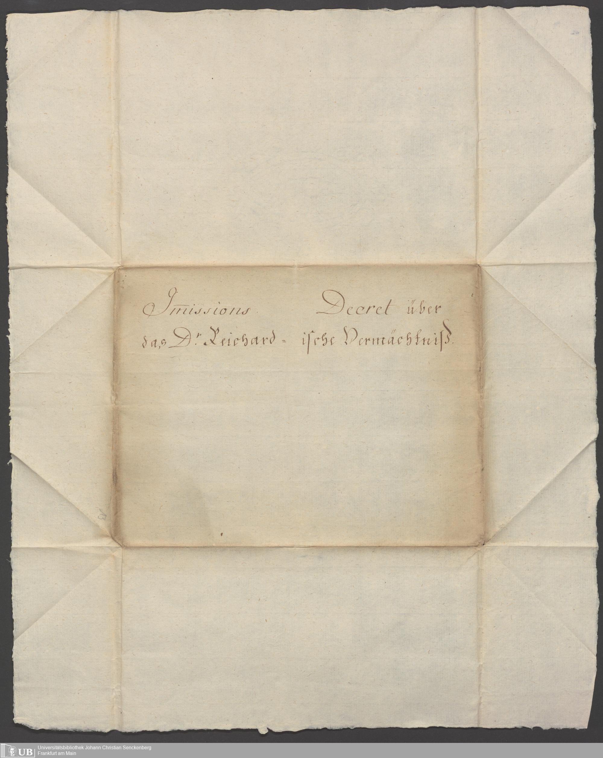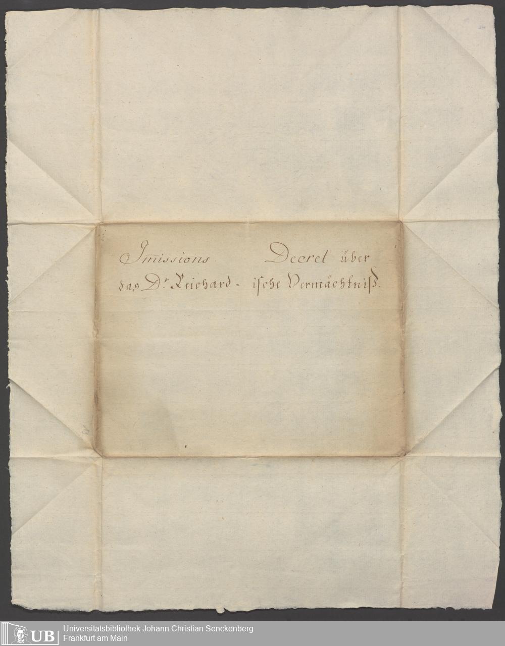 B 5 Dr. Senckenbergische Stiftung, 90 - Vermächtnisakten Dr. Johann Jakob Reichard