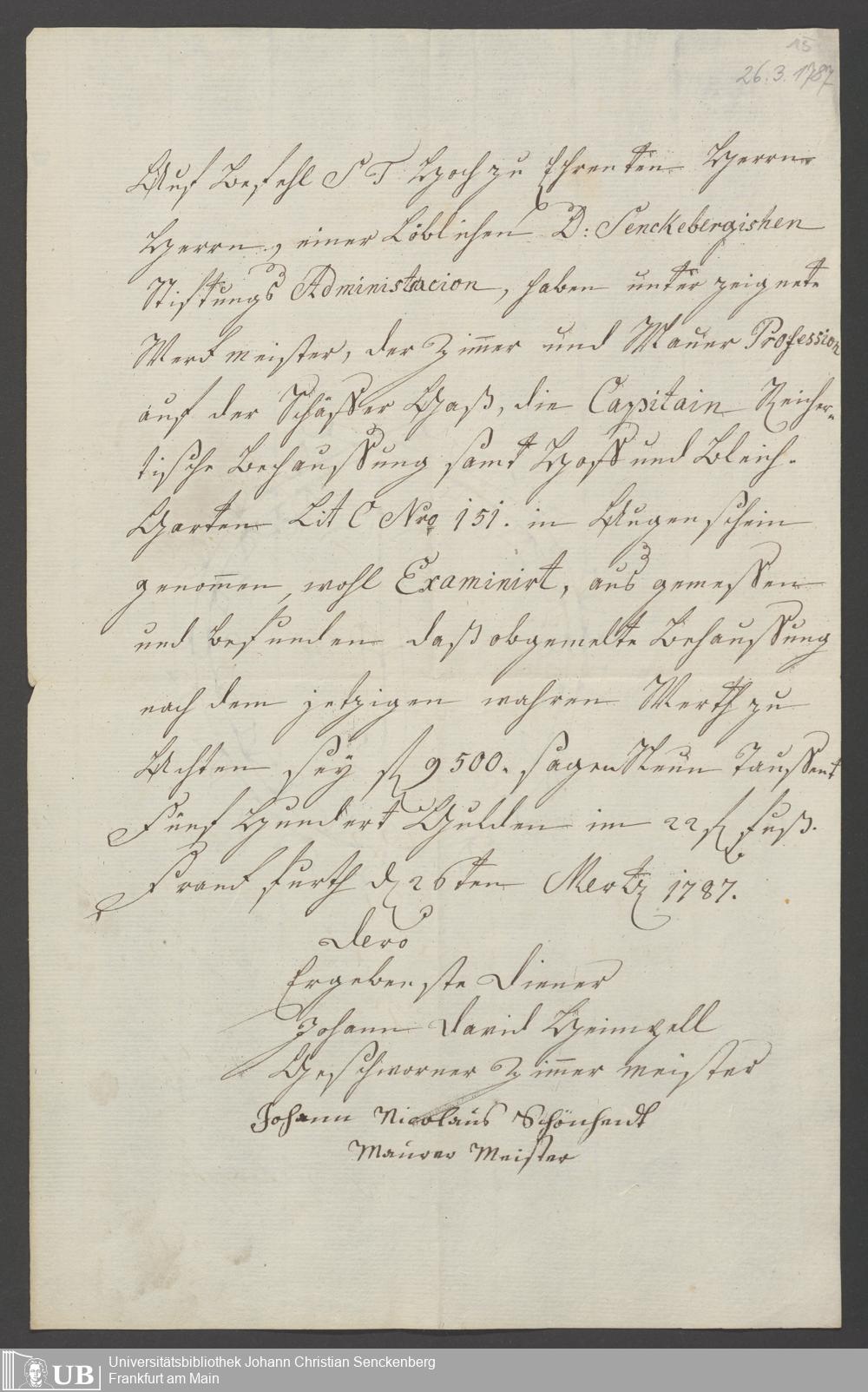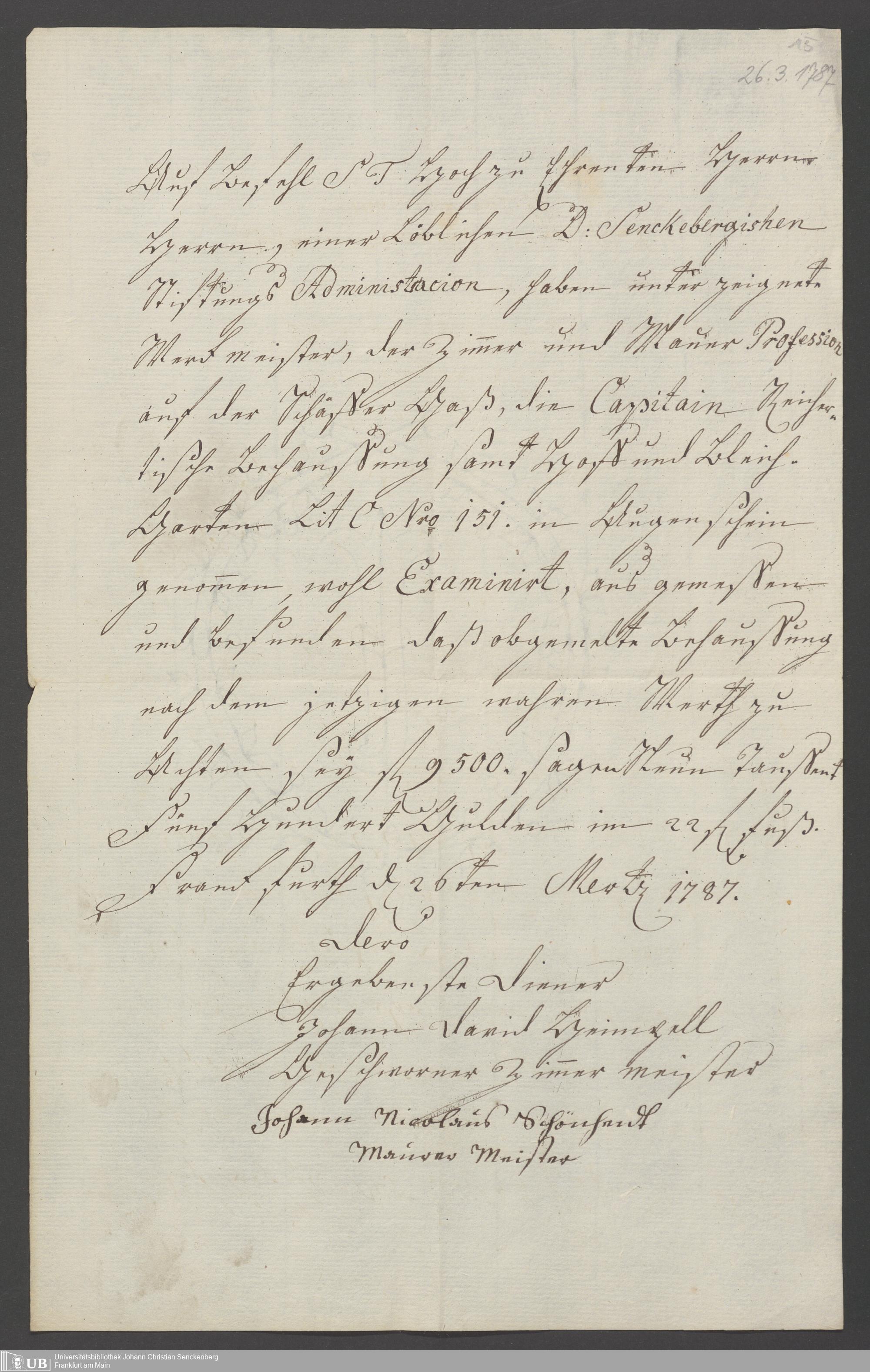 B 5 Dr. Senckenbergische Stiftung, 90 - Vermächtnisakten Dr. Johann Jakob Reichard