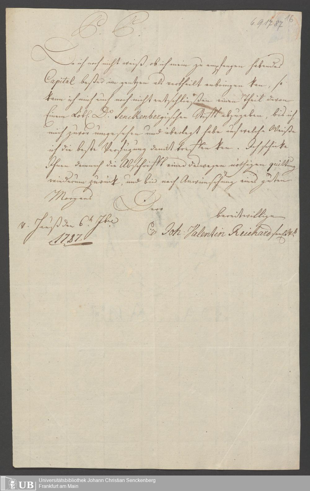 B 5 Dr. Senckenbergische Stiftung, 90 - Vermächtnisakten Dr. Johann Jakob Reichard
