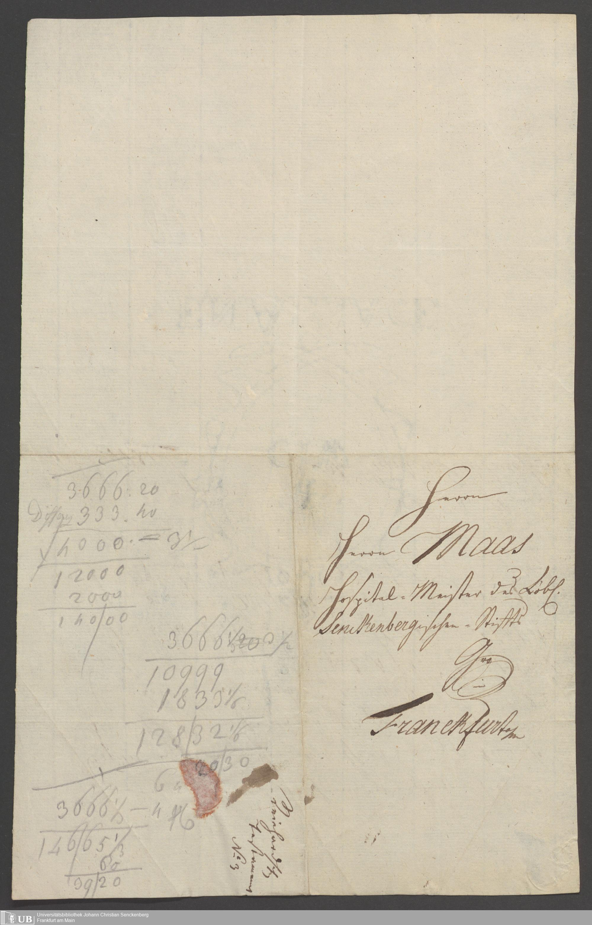 B 5 Dr. Senckenbergische Stiftung, 90 - Vermächtnisakten Dr. Johann Jakob Reichard