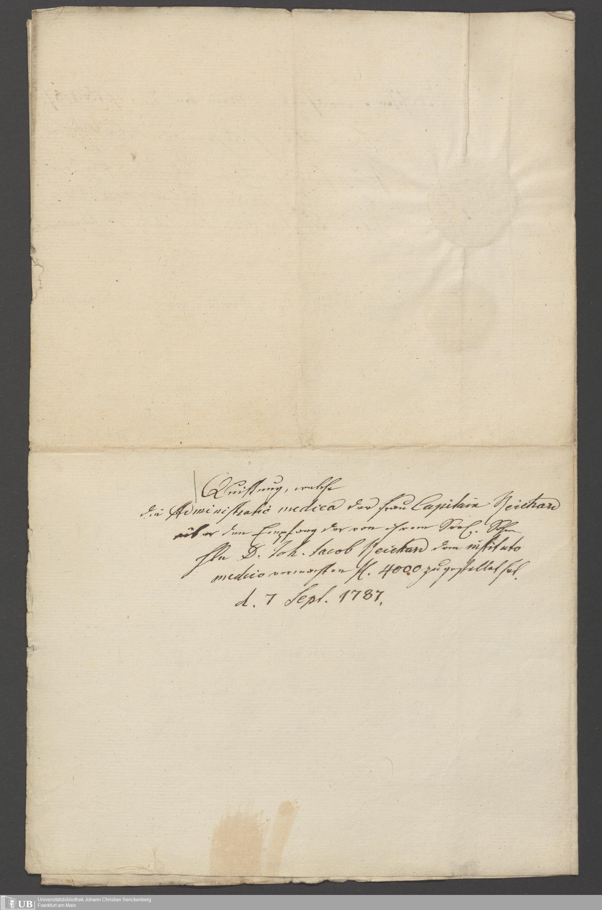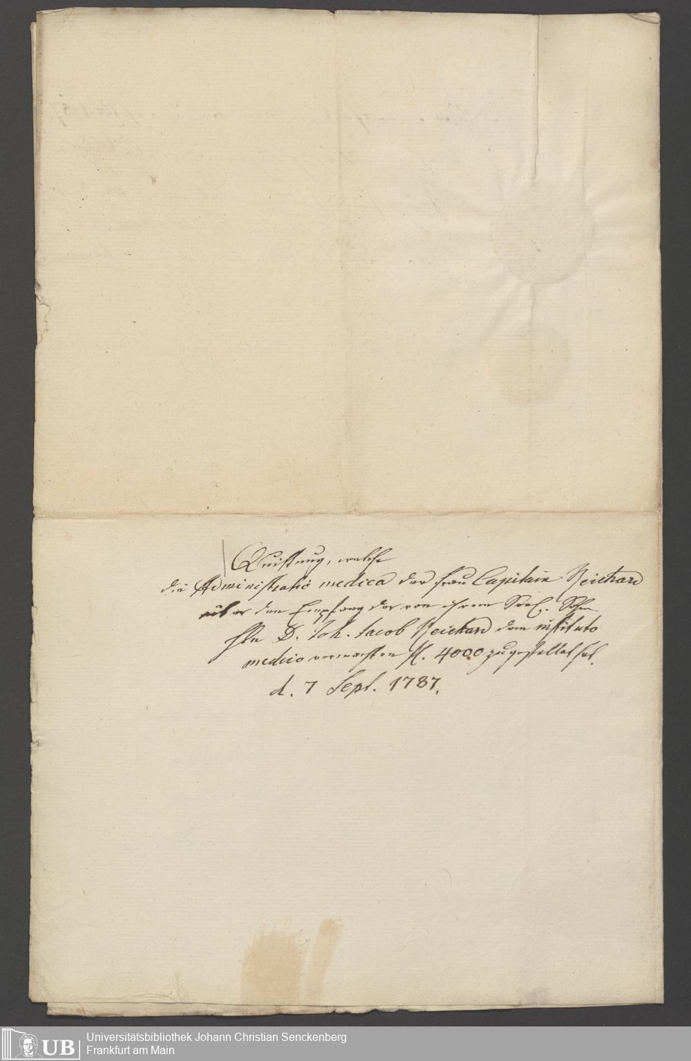 B 5 Dr. Senckenbergische Stiftung, 90 - Vermächtnisakten Dr. Johann Jakob Reichard
