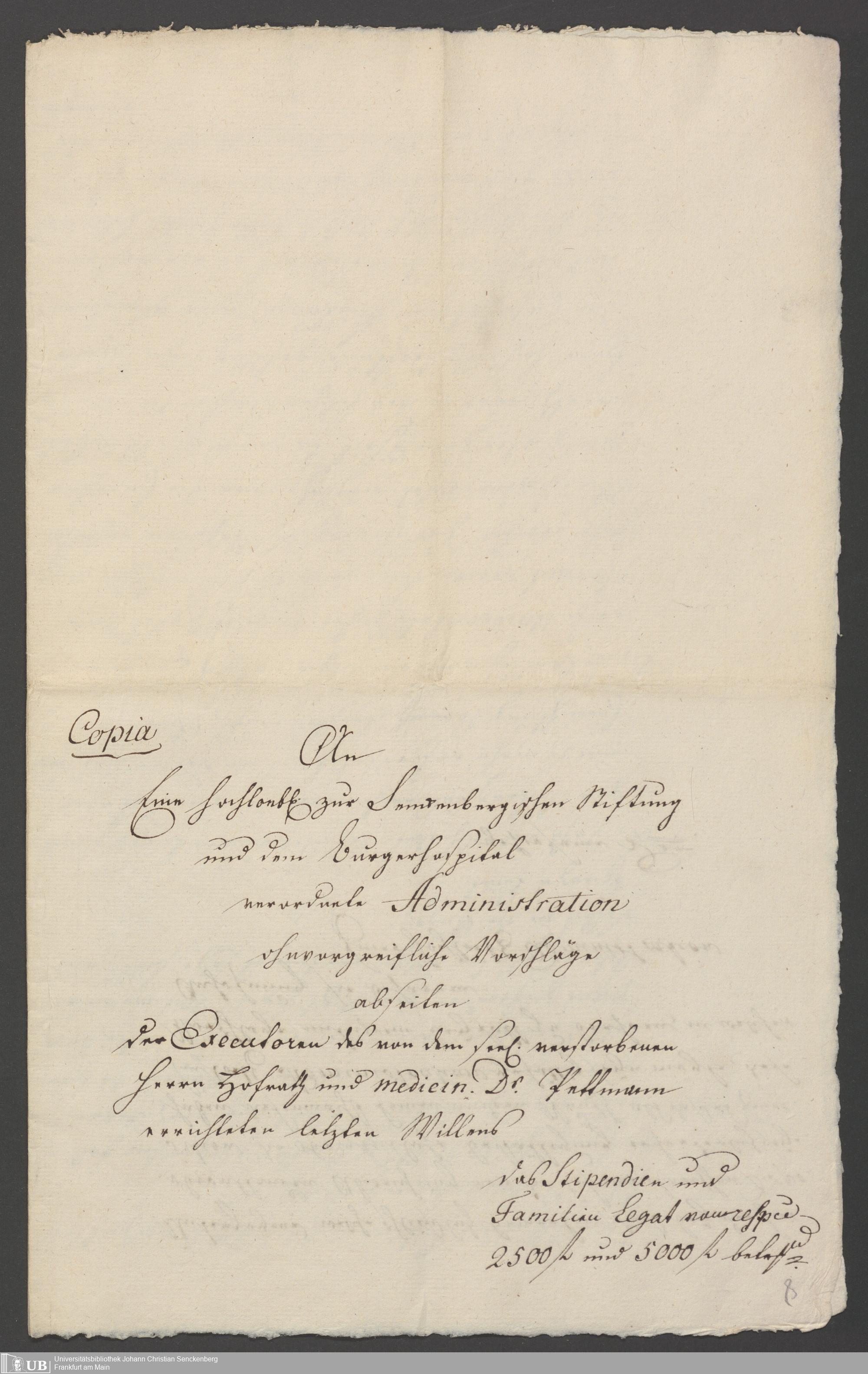 B 5 Dr. Senckenbergische Stiftung, 92 - Erbschaft Dr. Pettmann