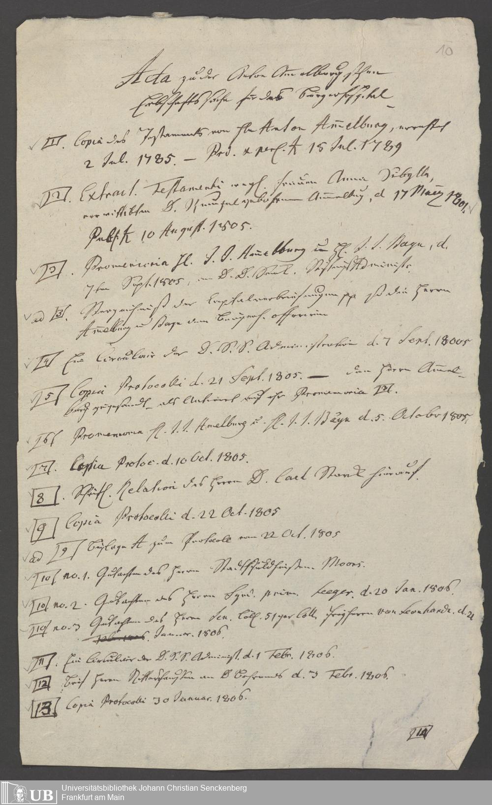 Nachlass Johann Christian Senckenberg