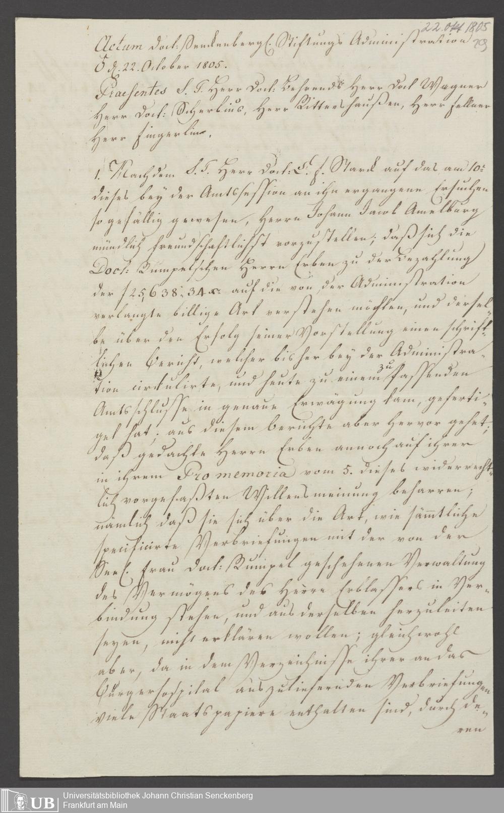 B 5 Dr. Senckenbergische Stiftung, 93 - Erbschaftssache Anton Ammelburg