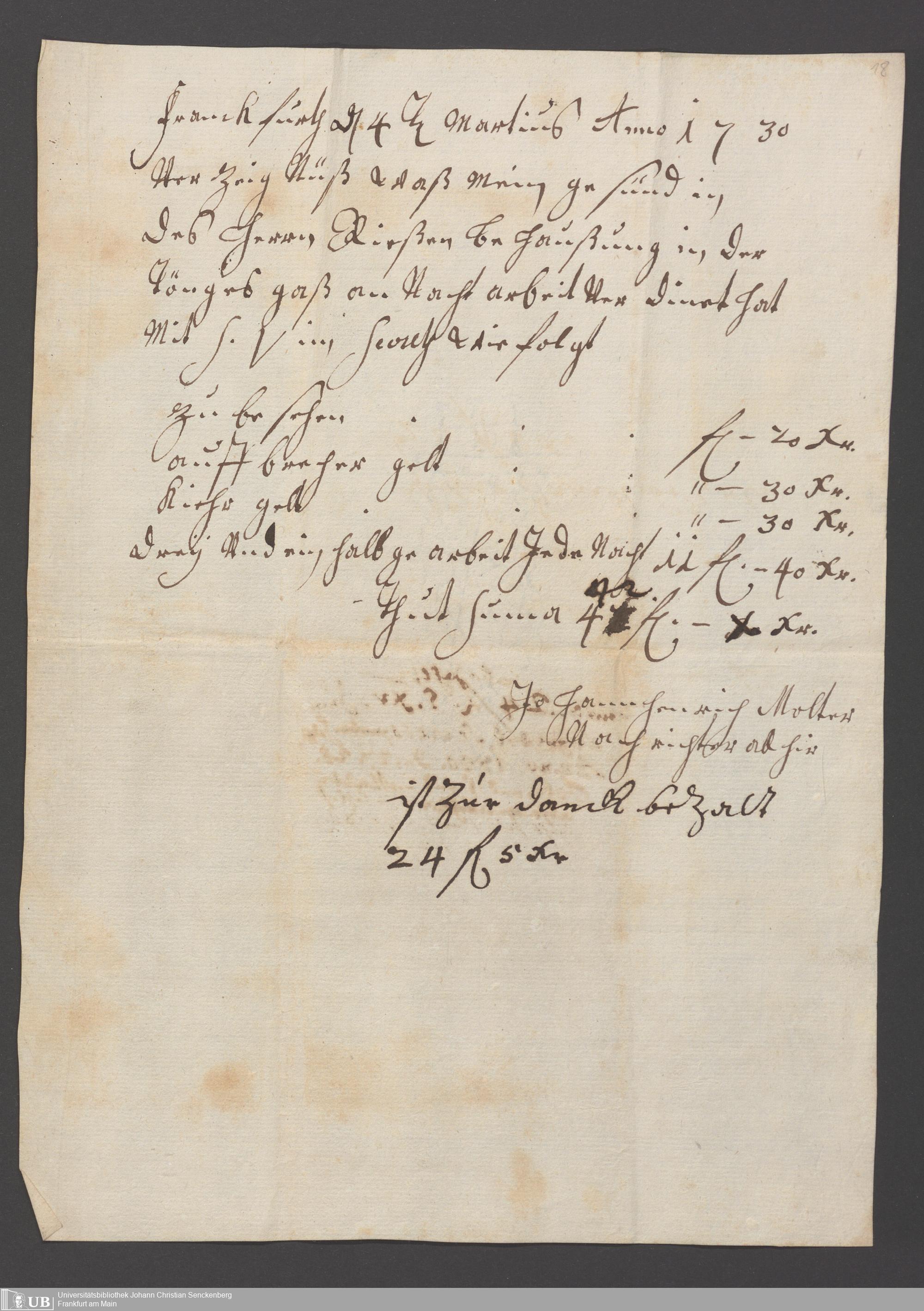 Na 31 Nachlass Johann Christian Senckenberg, 397 - Hauangelegenheiten