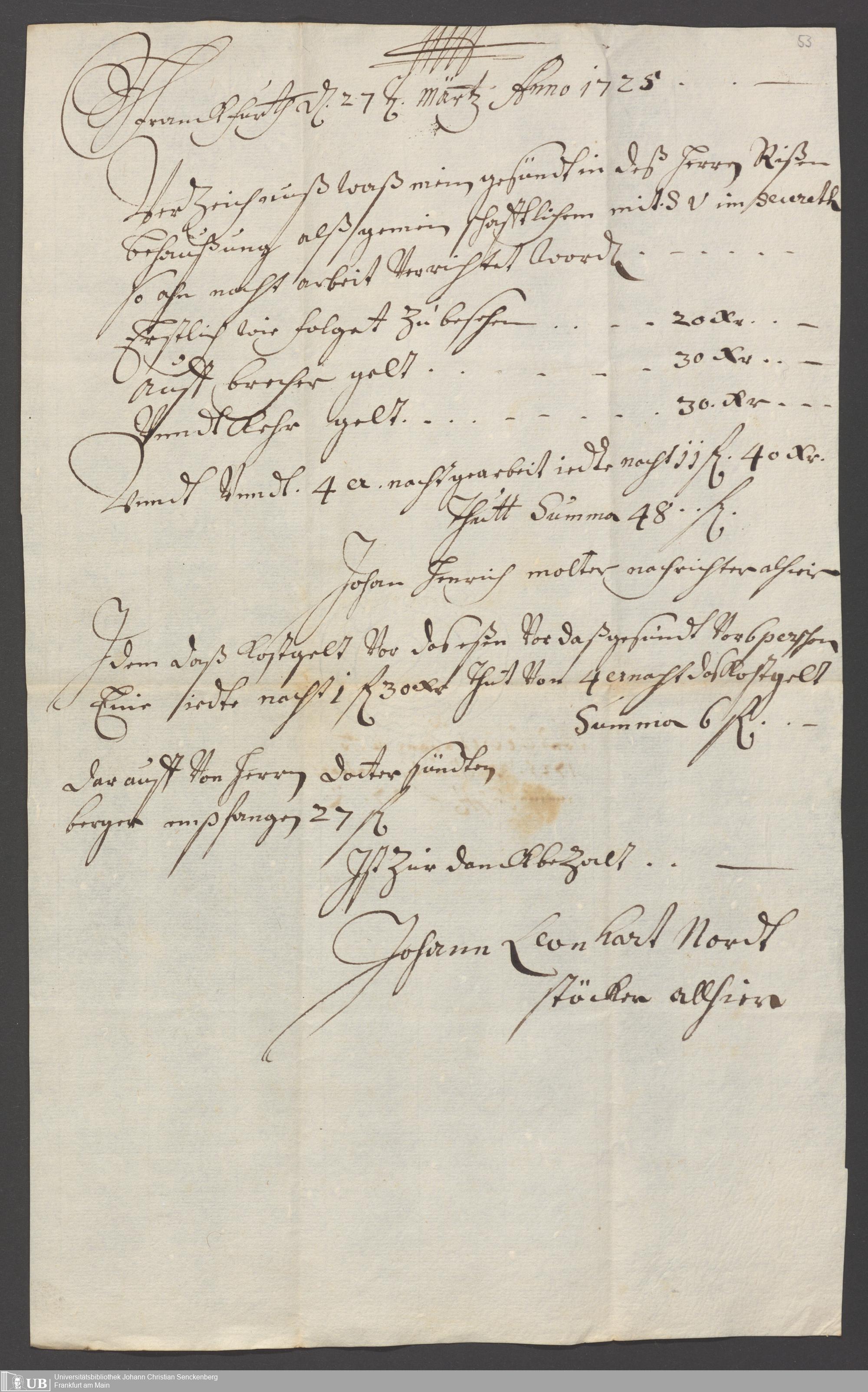Na 31 Nachlass Johann Christian Senckenberg, 397 - Hauangelegenheiten