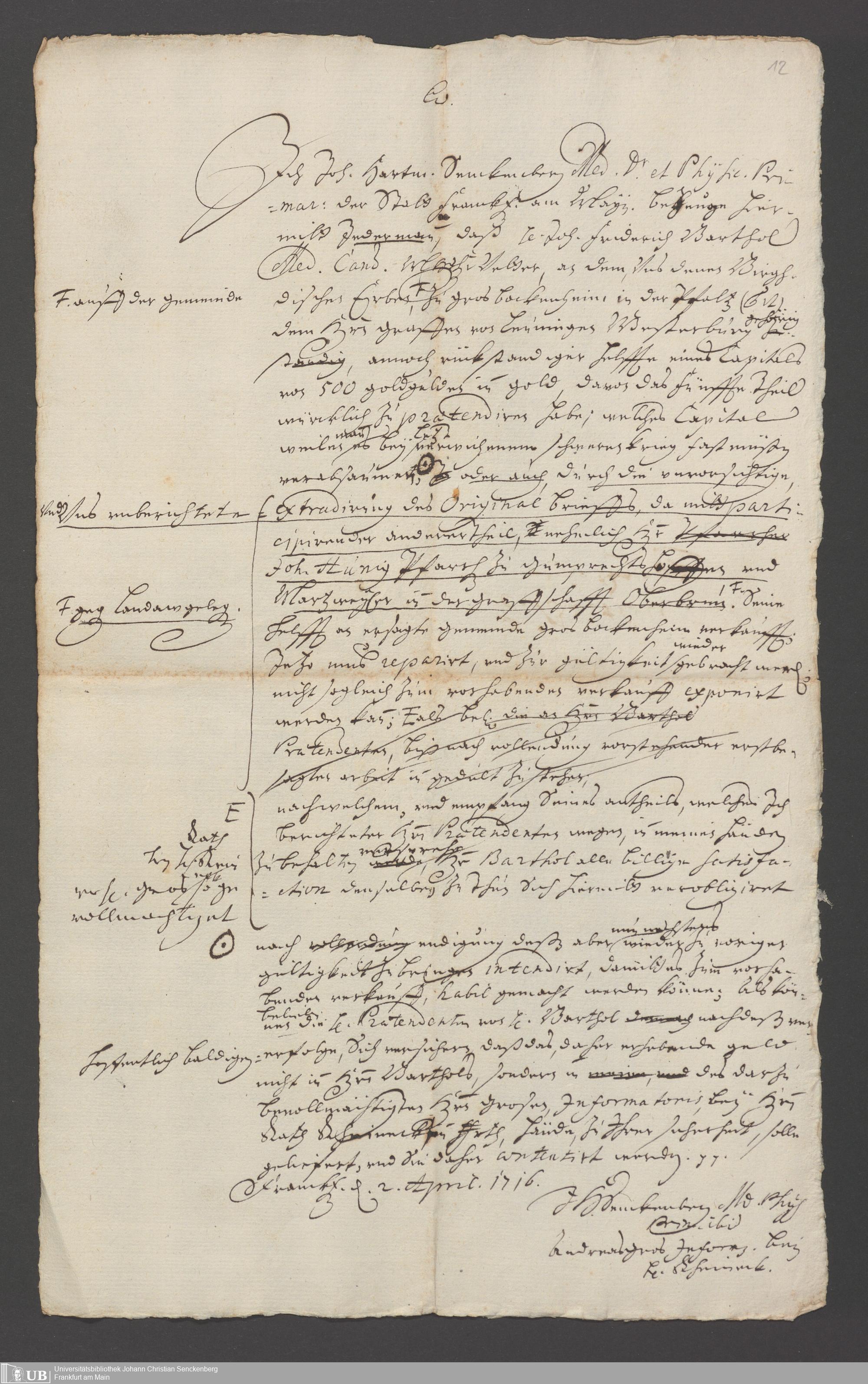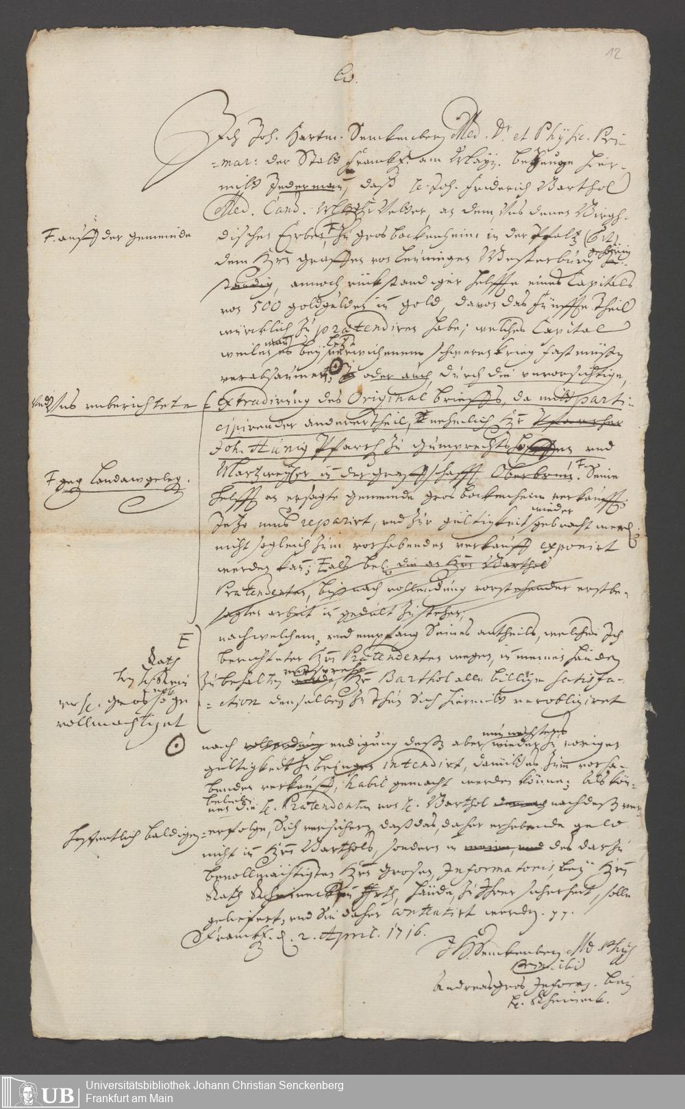 Na 31 Nachlass Johann Christian Senckenberg, 398 - Abrechnungen über das Vermögen des Mündels Barthol