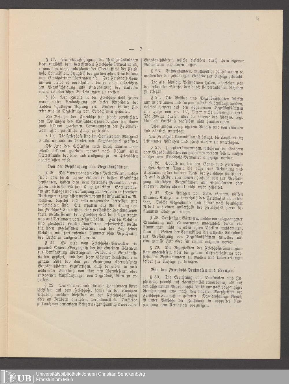 B 5 Dr. Senckenbergische Stiftung, 23 - Verhandlungen der Administration mit dem Friedhofsamt