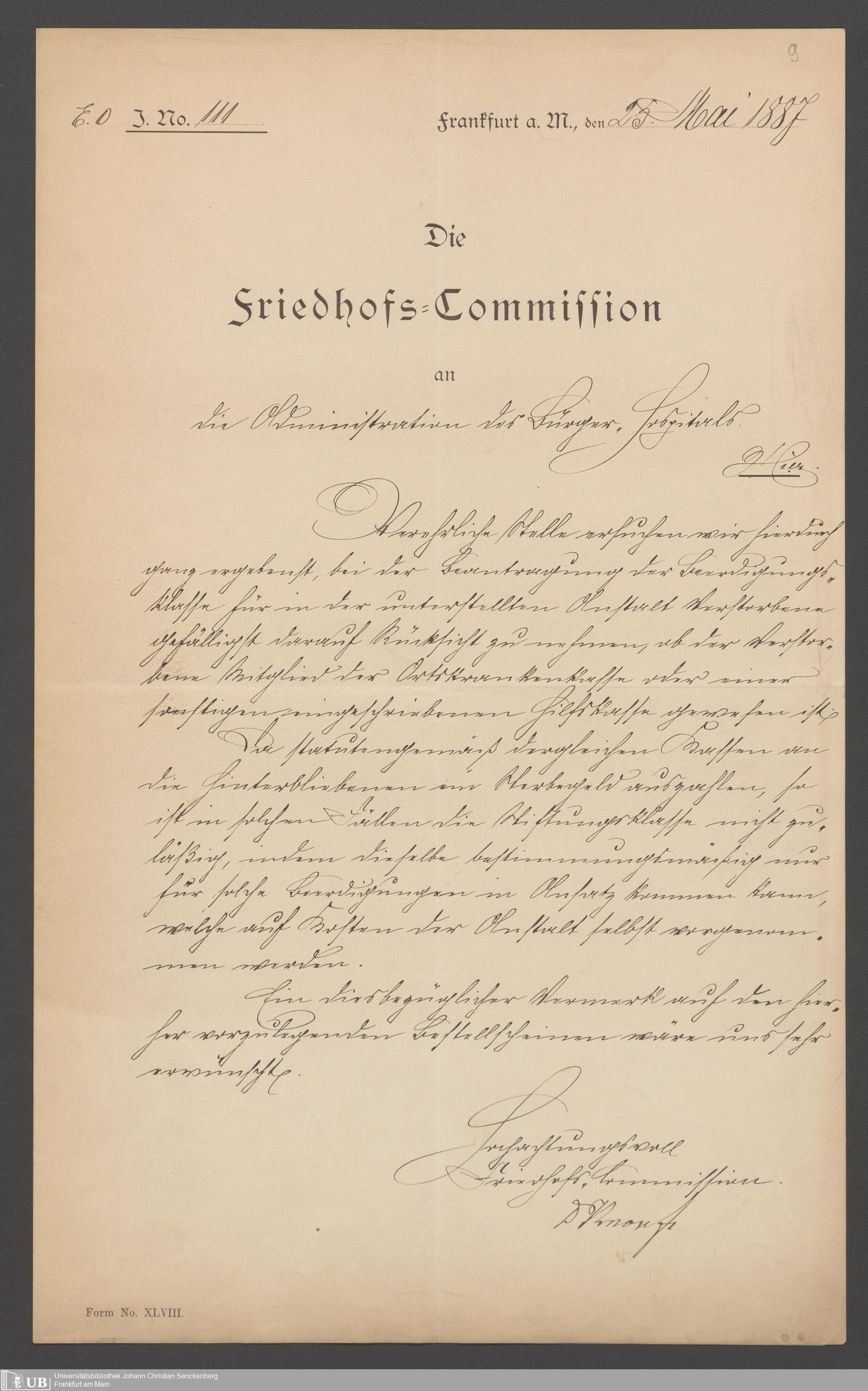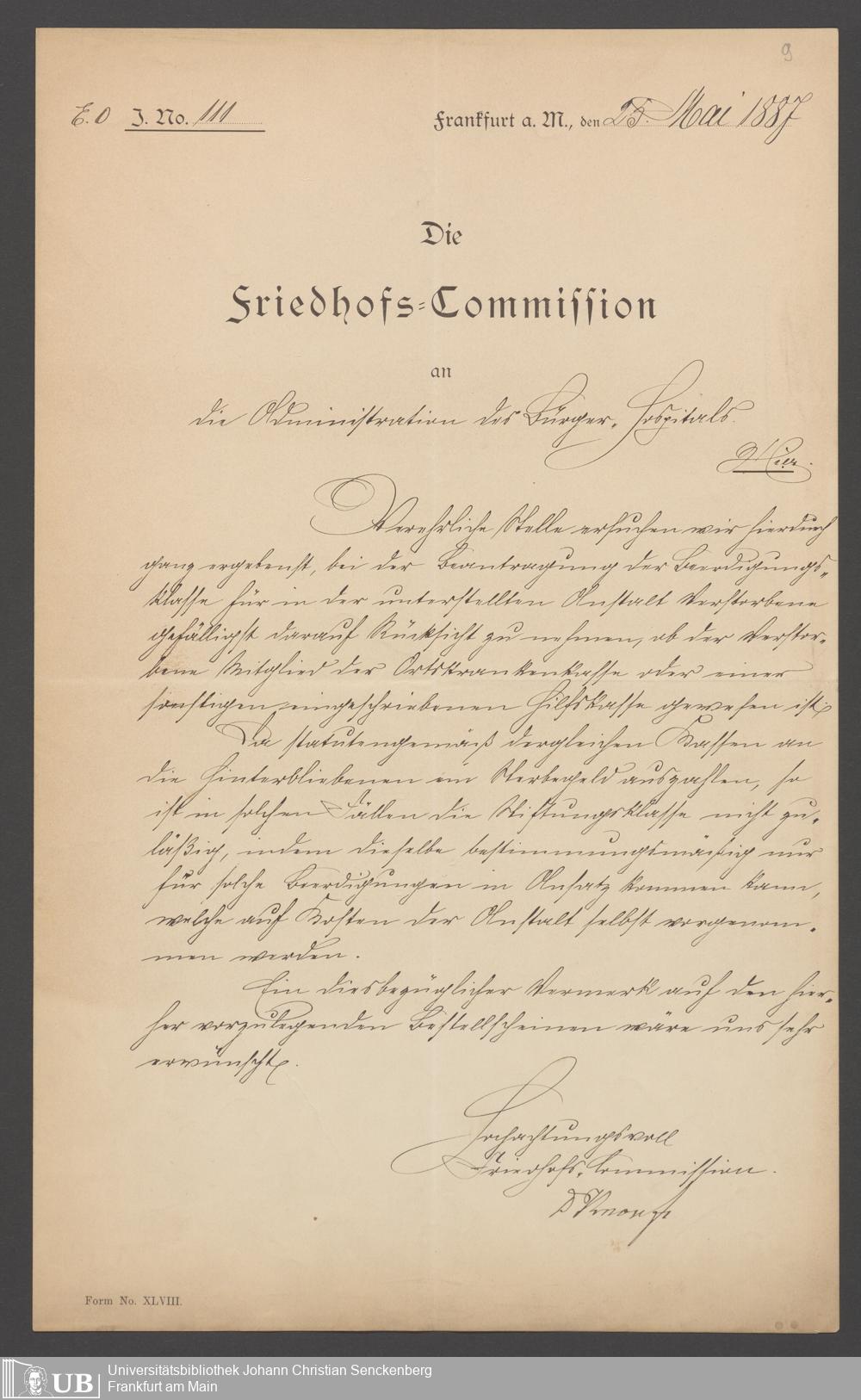 B 5 Dr. Senckenbergische Stiftung, 23 - Verhandlungen der Administration mit dem Friedhofsamt