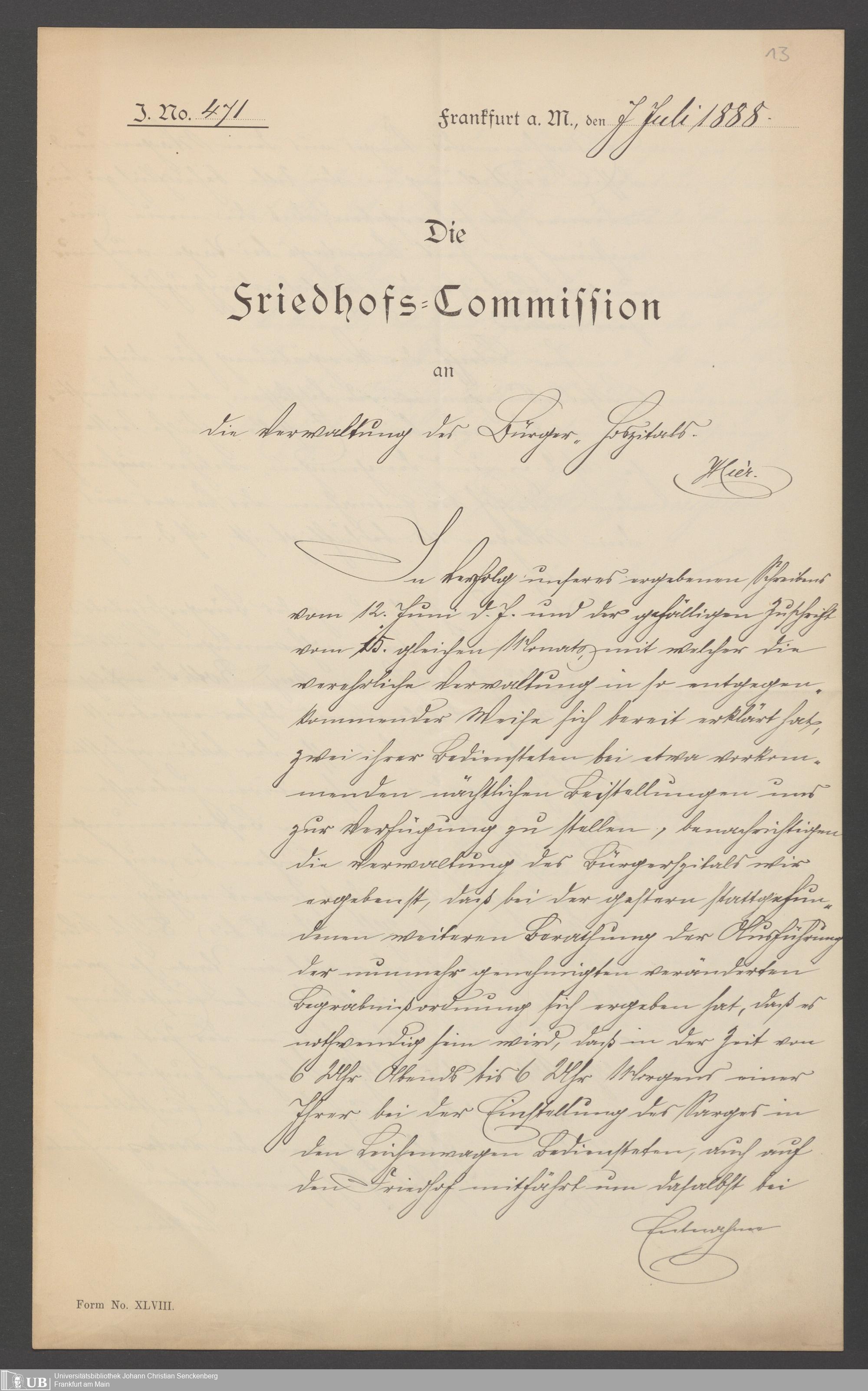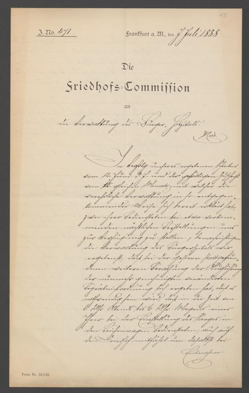 B 5 Dr. Senckenbergische Stiftung, 23 - Verhandlungen der Administration mit dem Friedhofsamt