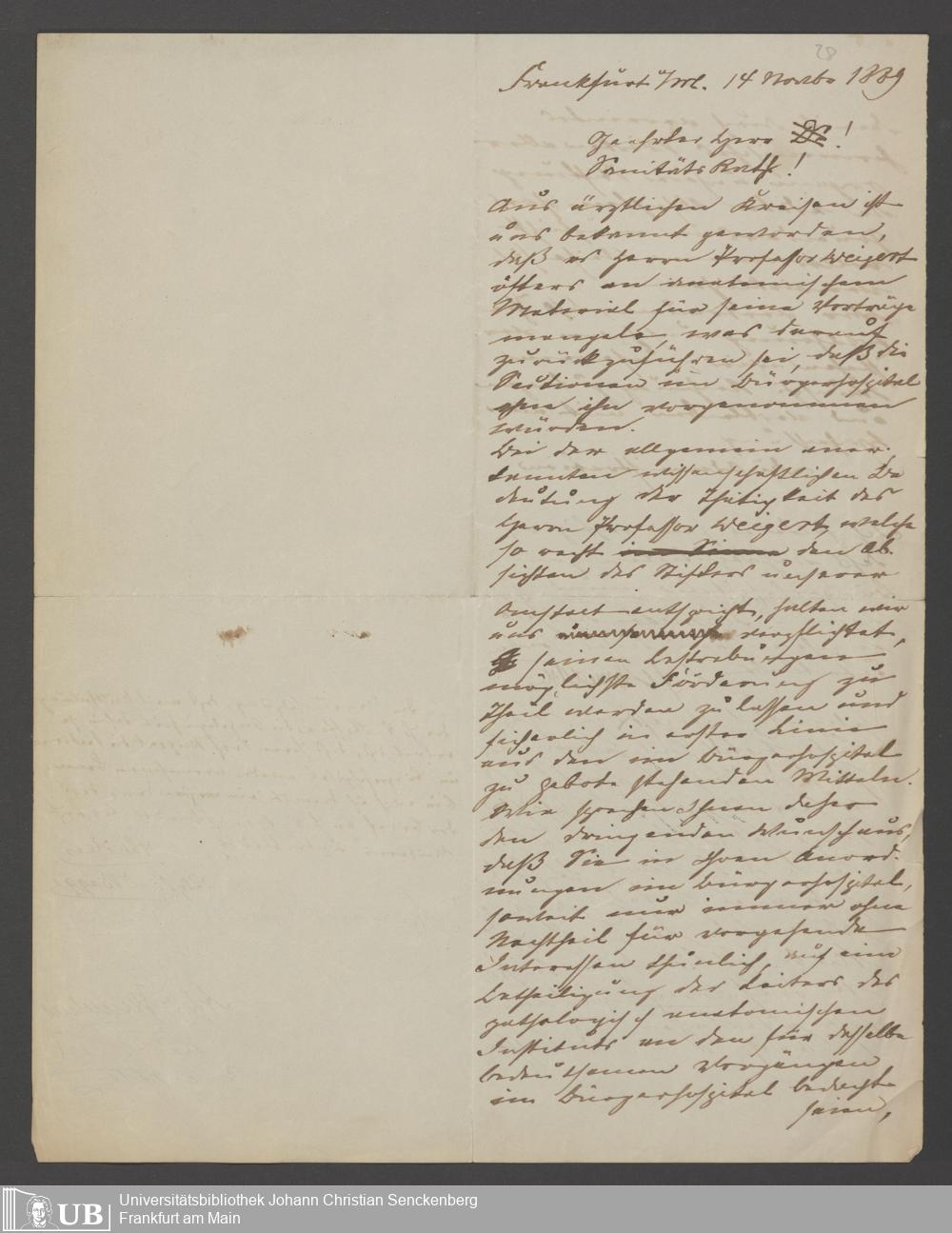 B 5 Dr. Senckenbergische Stiftung, 24 - Briefe an die Administration
