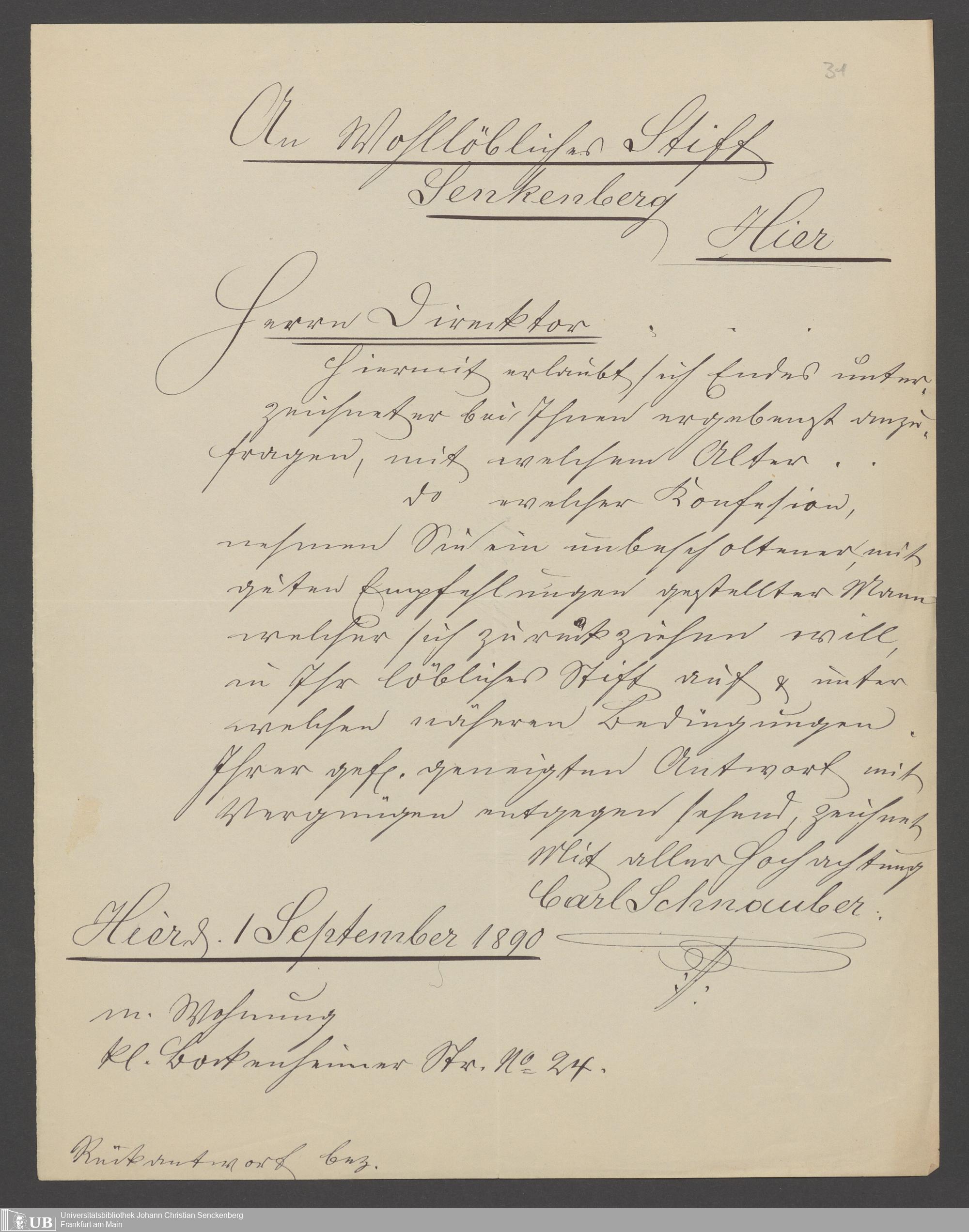B 5 Dr. Senckenbergische Stiftung, 24 - Briefe an die Administration