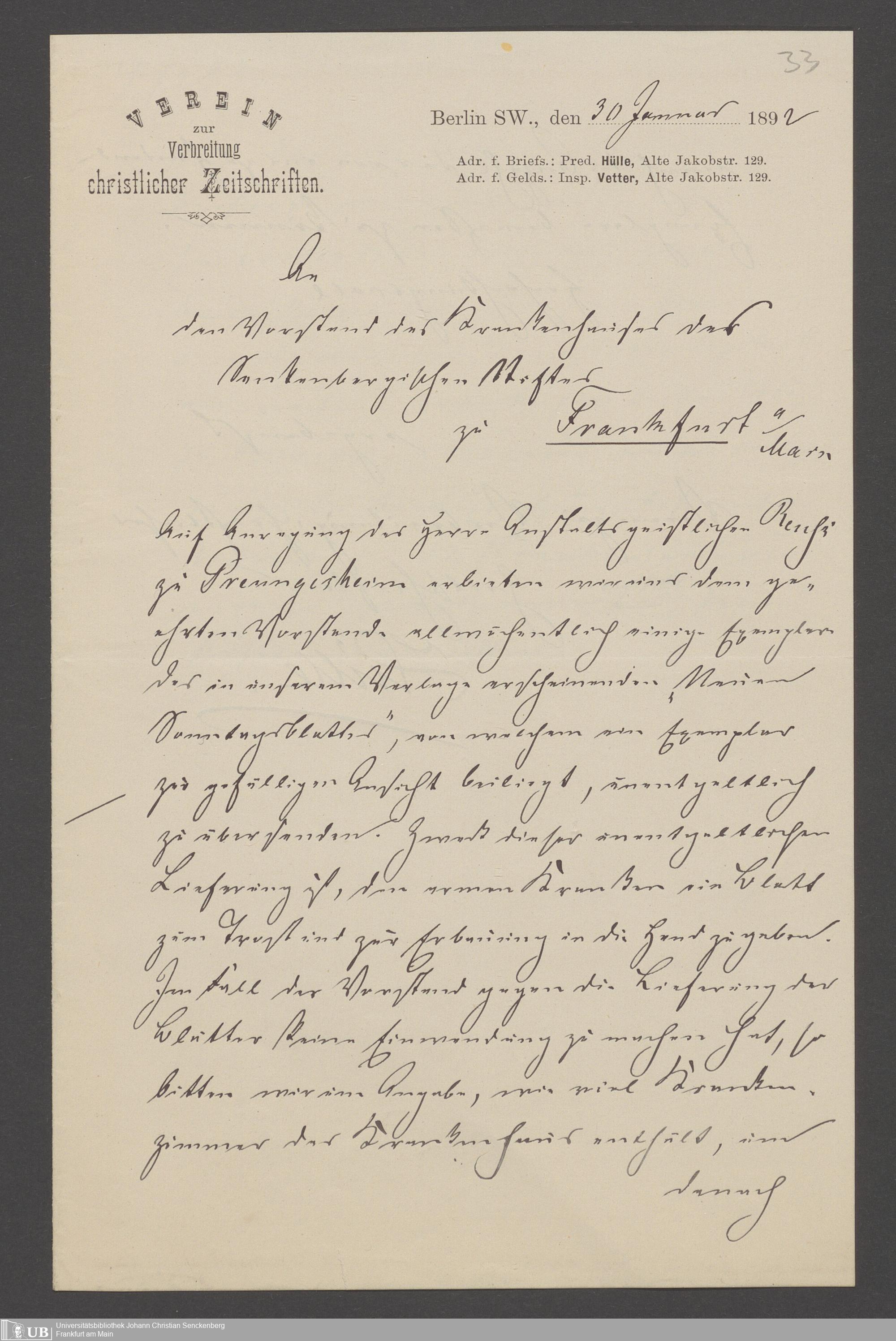 B 5 Dr. Senckenbergische Stiftung, 24 - Briefe an die Administration
