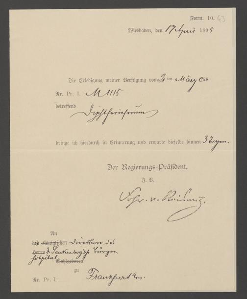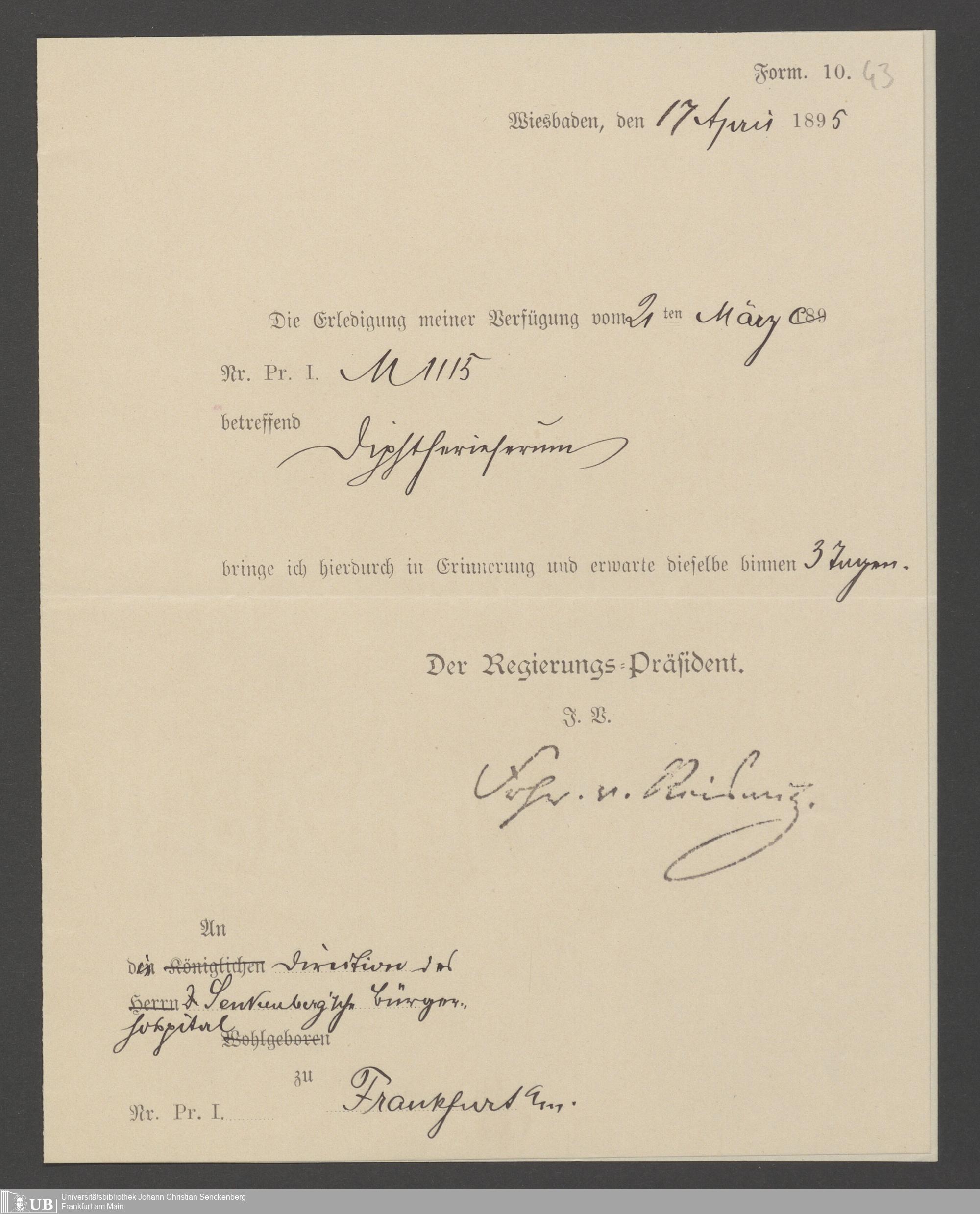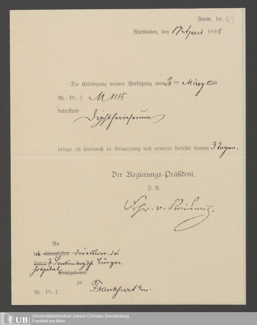 B 5 Dr. Senckenbergische Stiftung, 24 - Briefe an die Administration