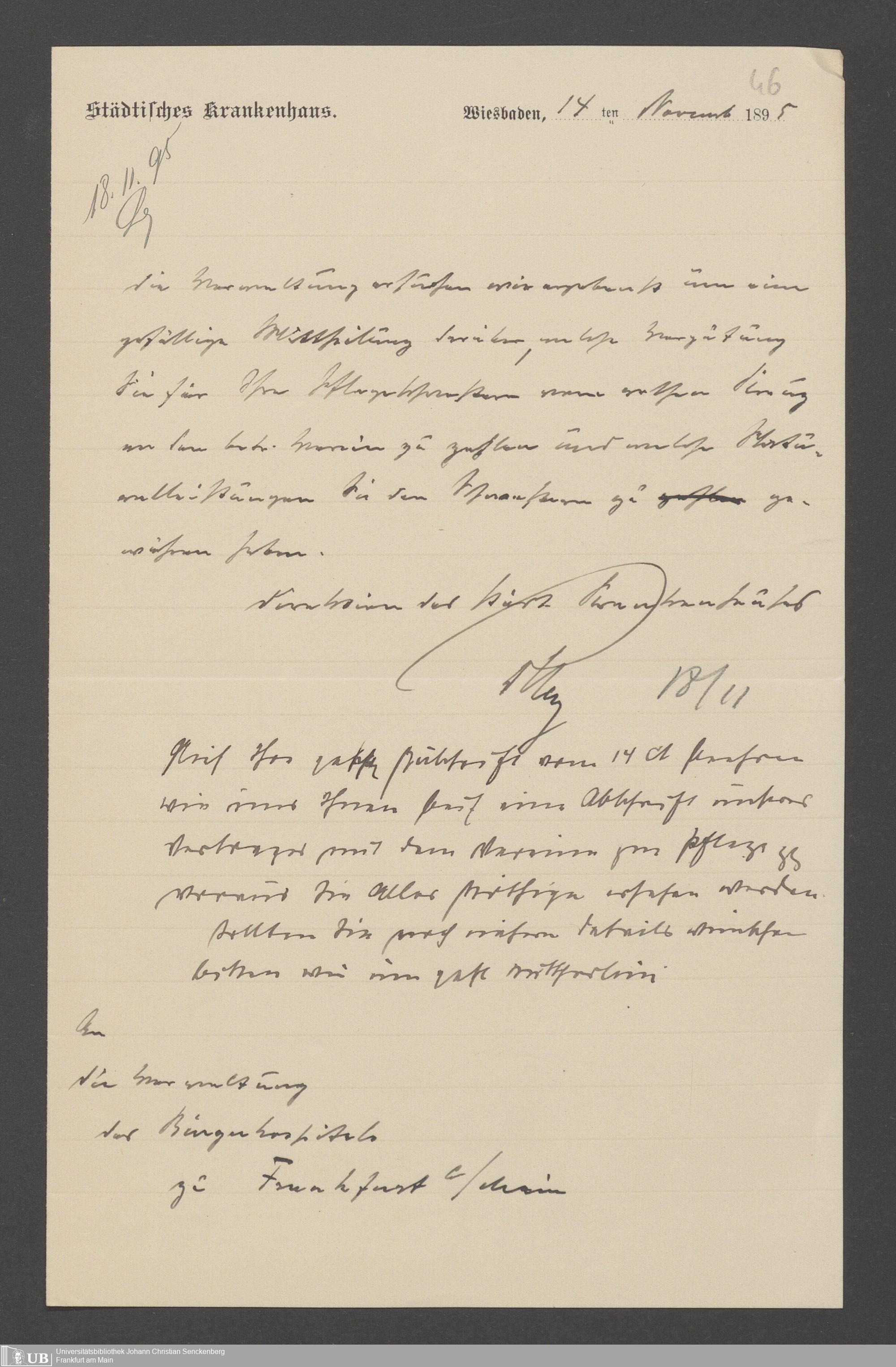 B 5 Dr. Senckenbergische Stiftung, 24 - Briefe an die Administration