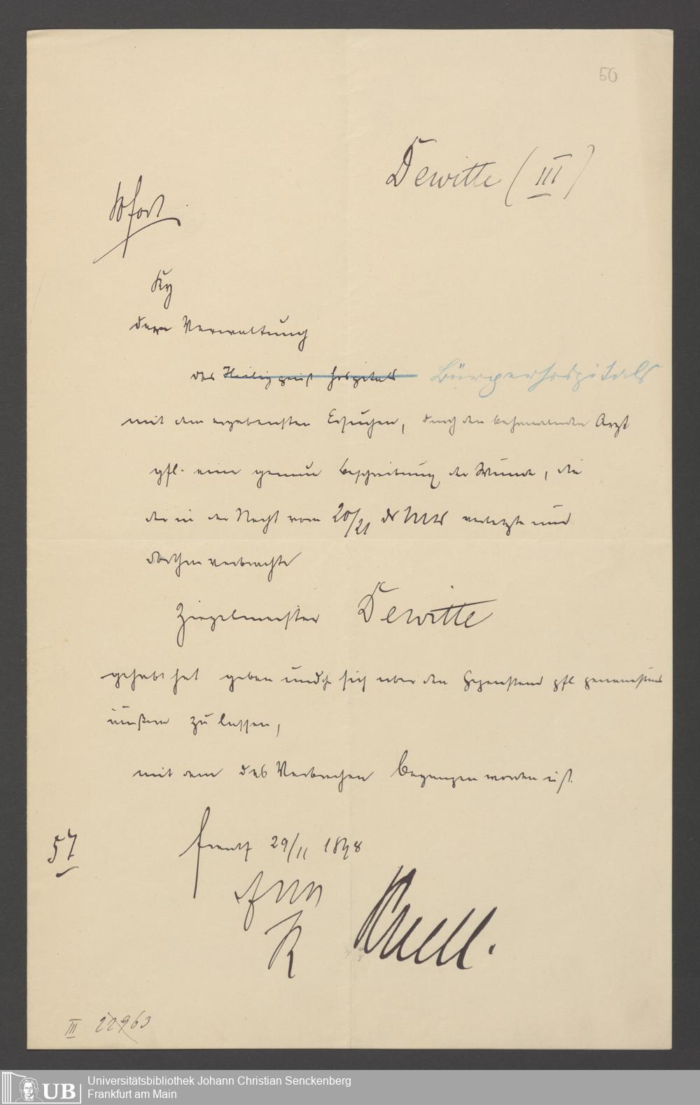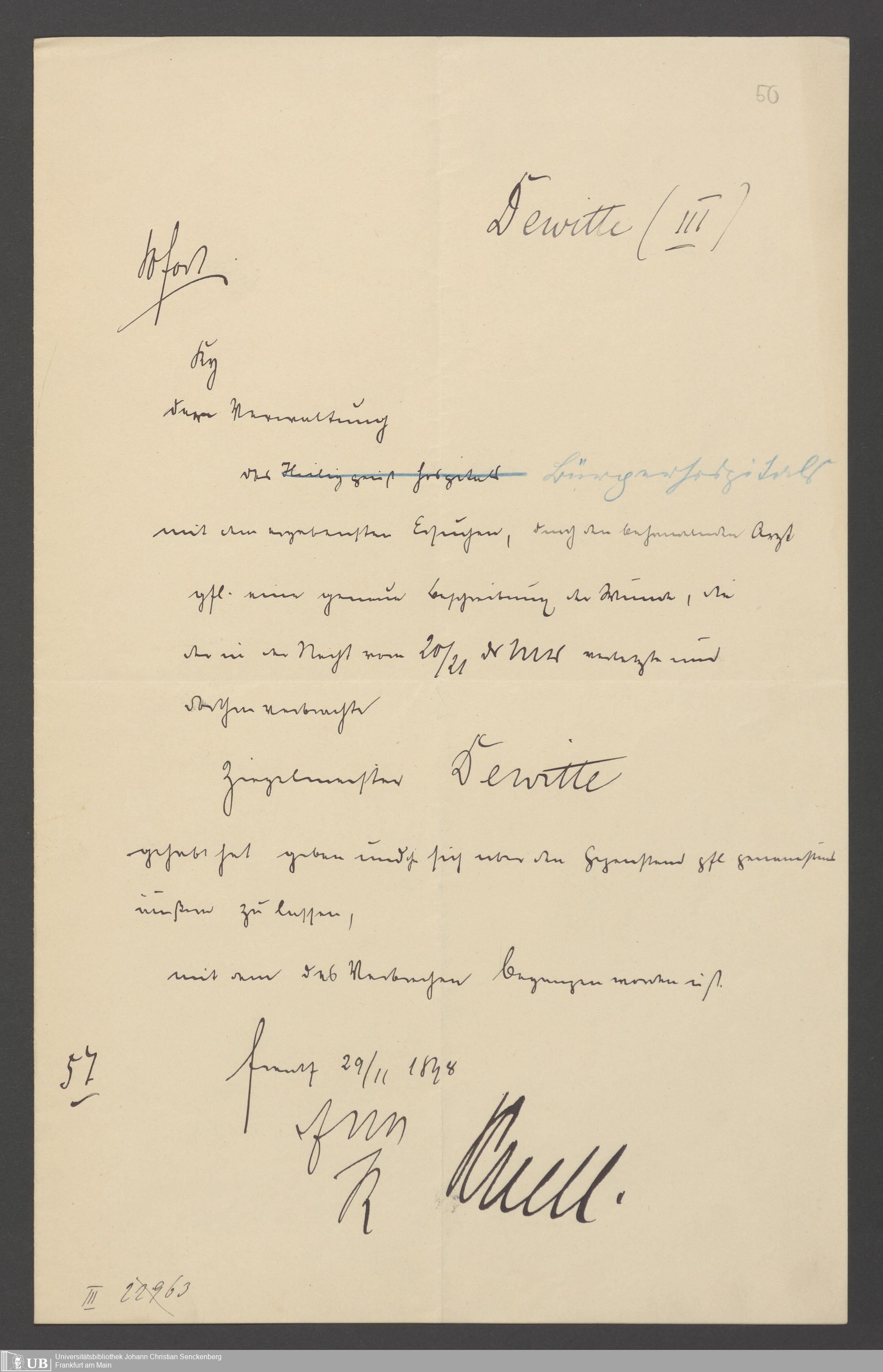 B 5 Dr. Senckenbergische Stiftung, 24 - Briefe an die Administration