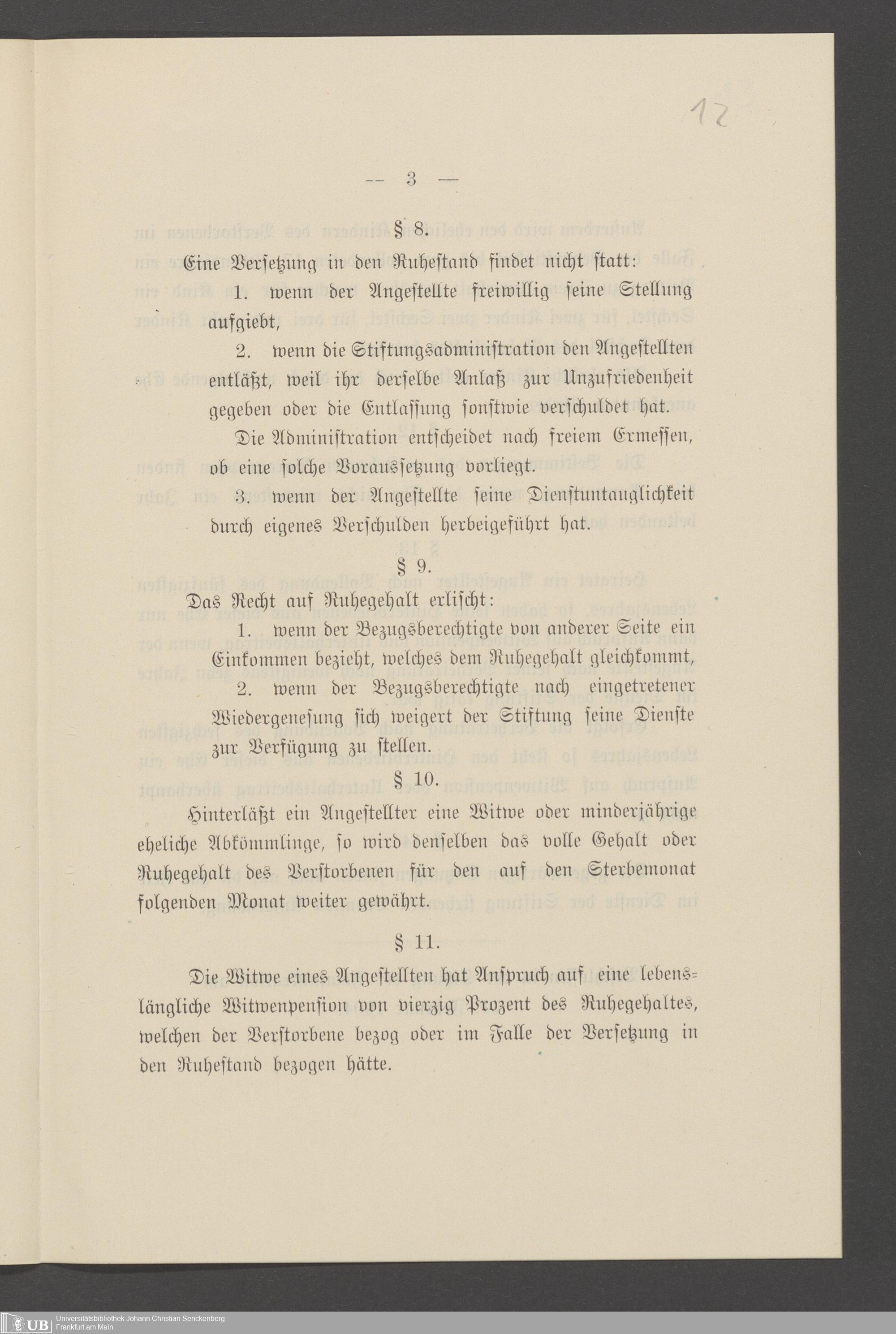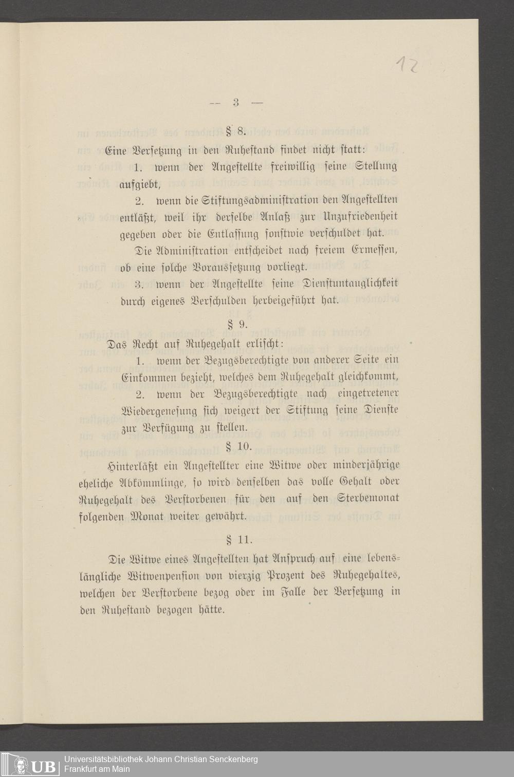 B 5 Dr. Senckenbergische Stiftung, 25 - Satzungen über Ruhegehalt und Fürsorge der Hinterbliebenen der Angestellten der Stiftung