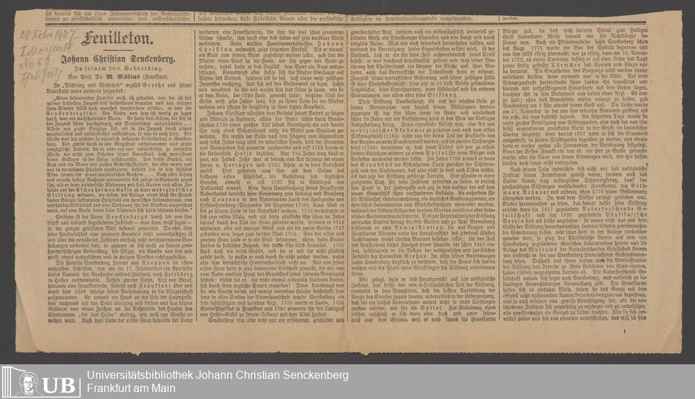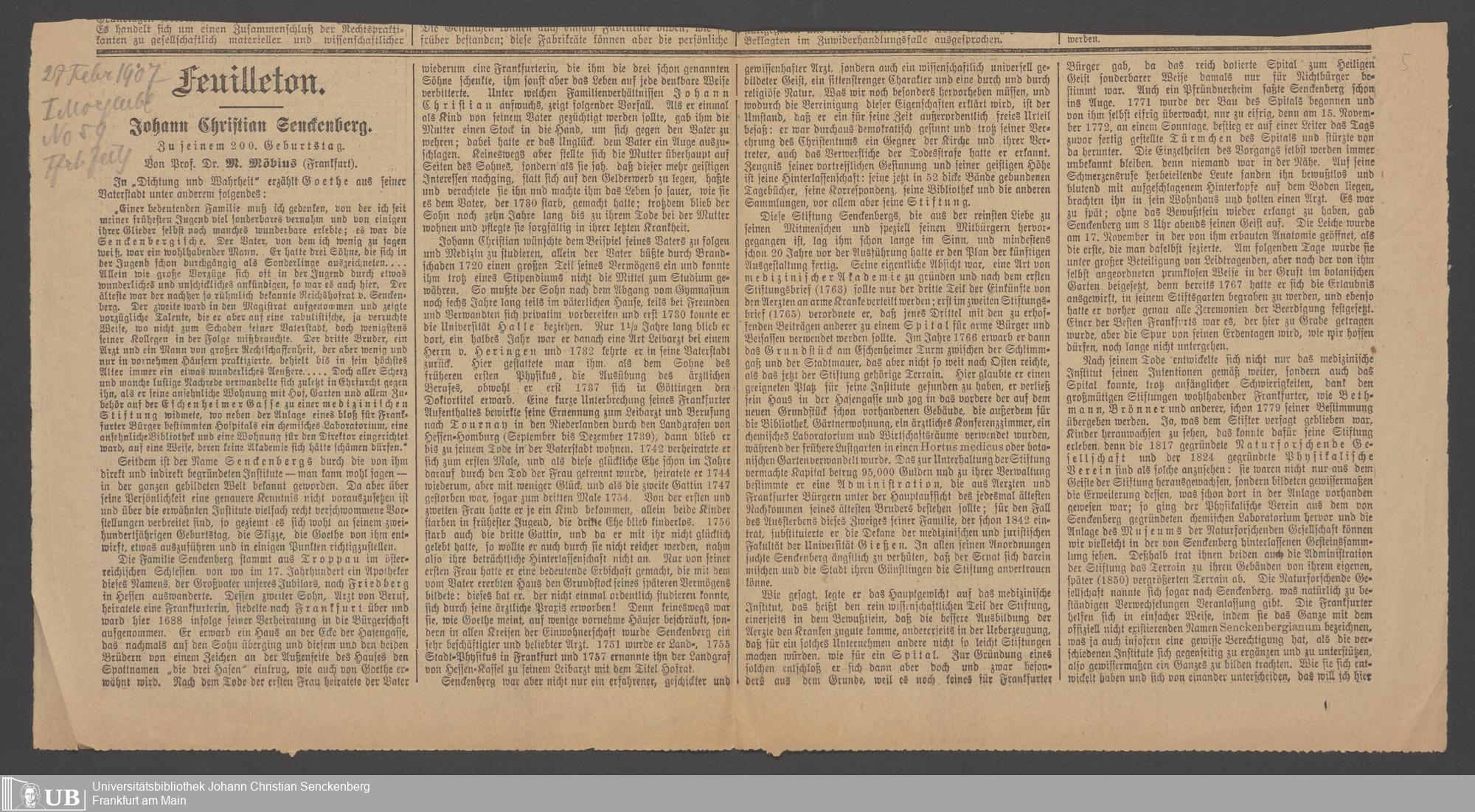 B 5 Dr. Senckenbergische Stiftung, 28 - Presseberichte und Festordnung zum 200. Geburtstag des Stifters