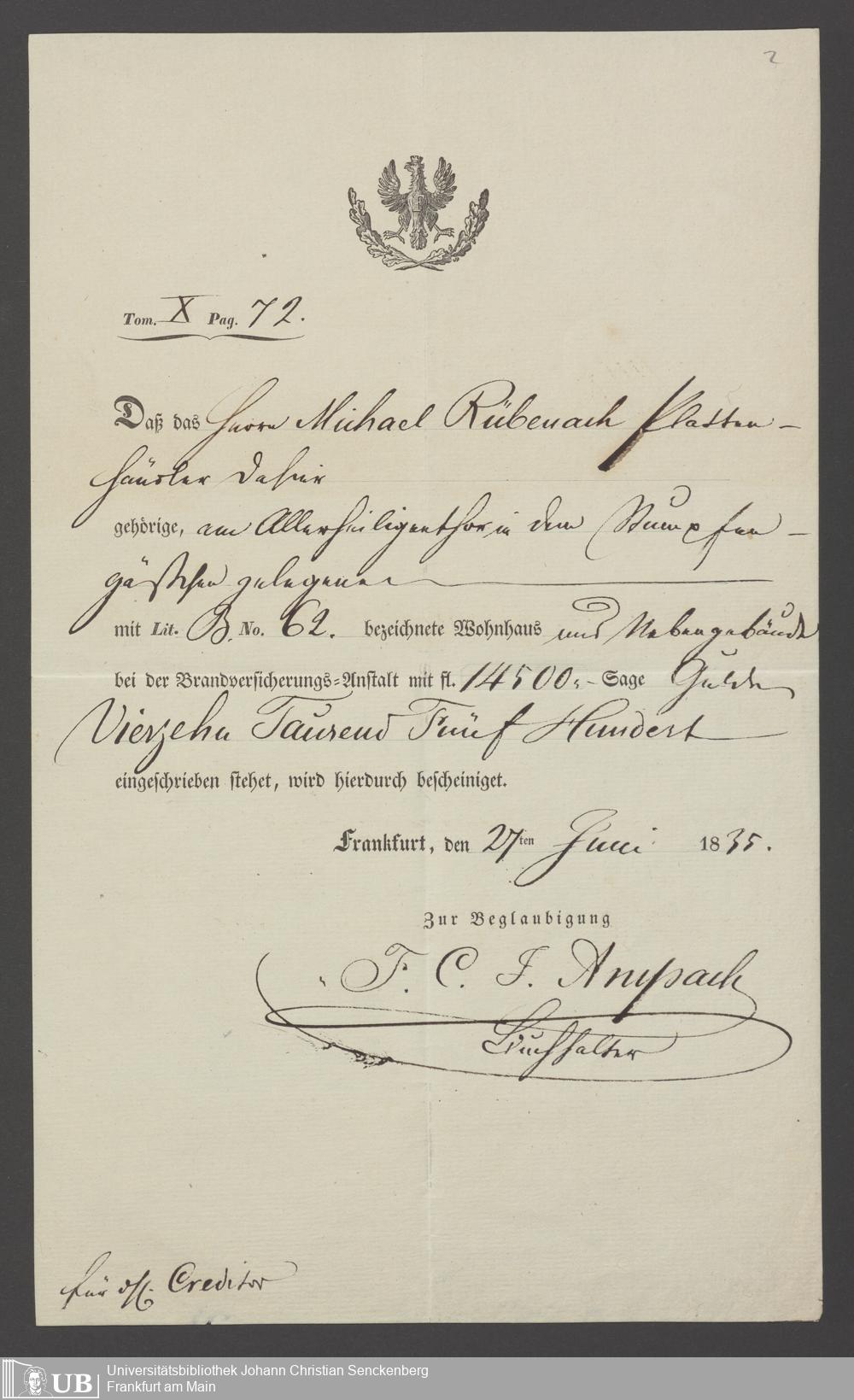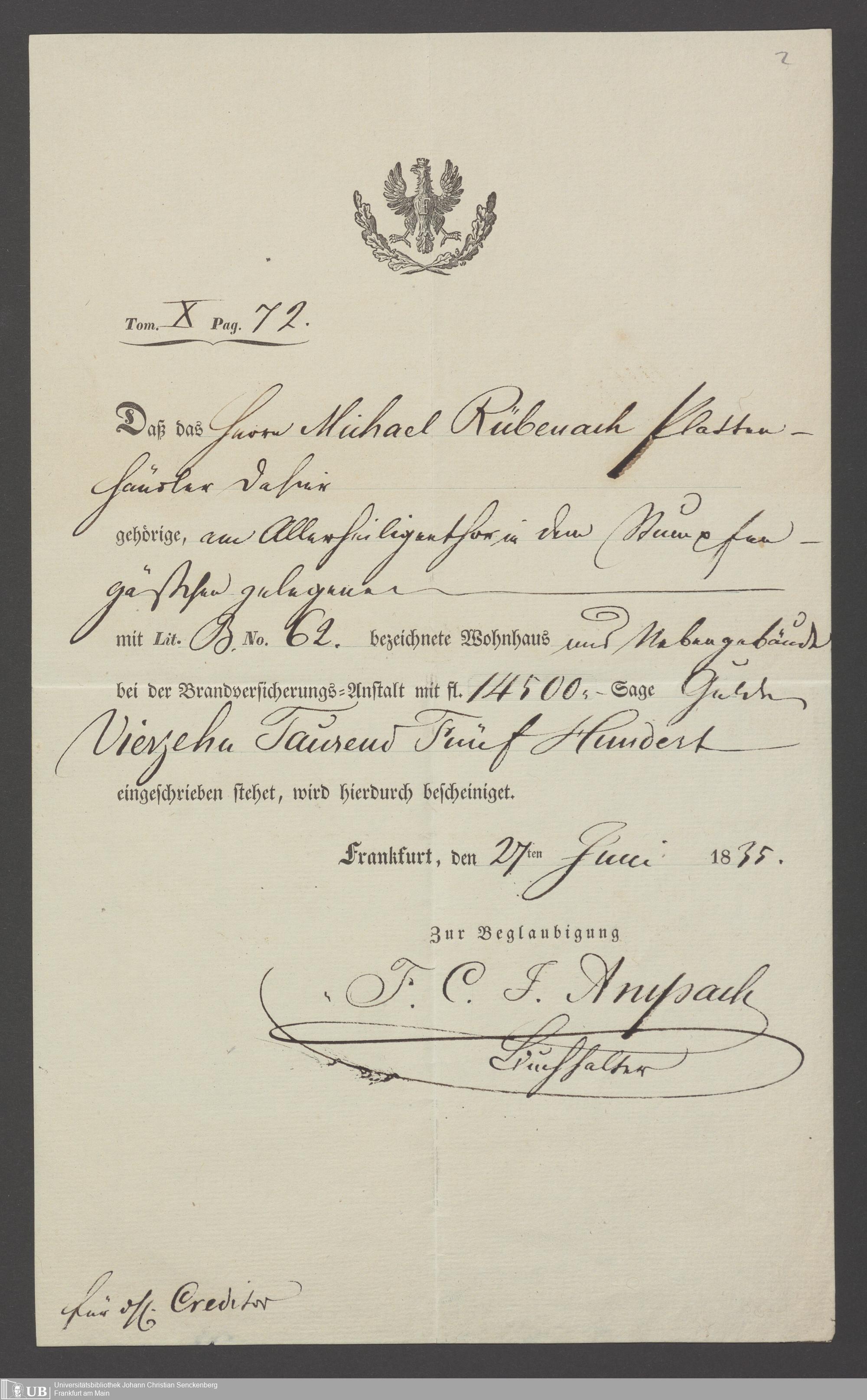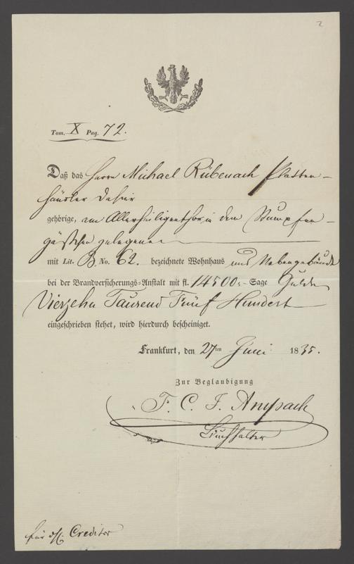 B 5 Dr. Senckenbergische Stiftung, 30 - Insatzkapital Rübenach, Kirchwedel