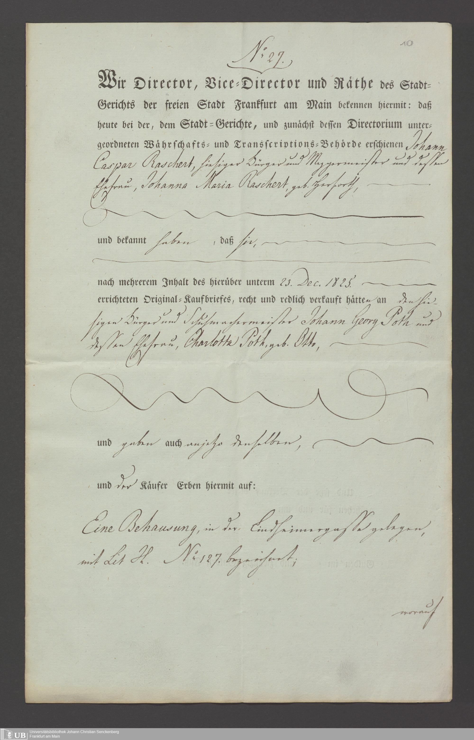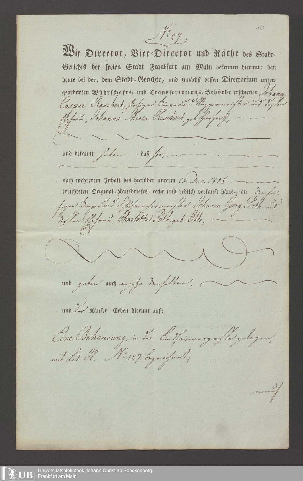 B 5 Dr. Senckenbergische Stiftung, 31 - Hypothek Haus 127, Lindheimergasse