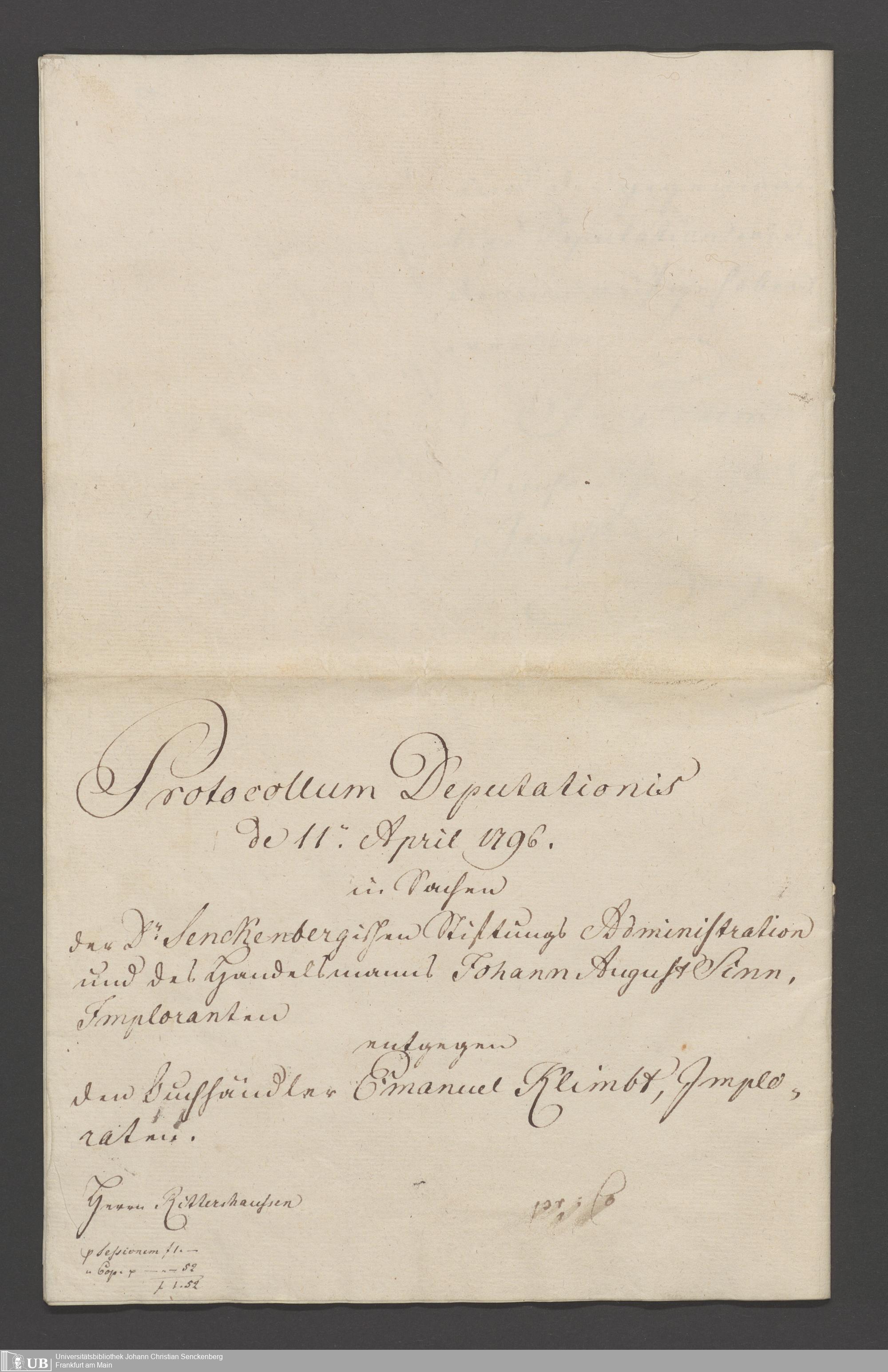 B 5 Dr. Senckenbergische Stiftung, 33 - Schriftwechsel Buchhändler Emanuel Klimbt mit der Administration