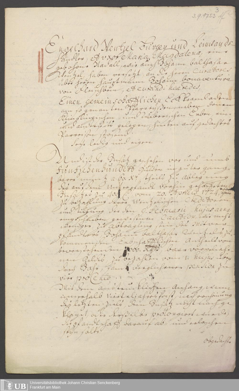 B 5 Dr. Senckenbergische Stiftung, 36 - Hypotheken für zwei Läden hinter dem Pfarreisen