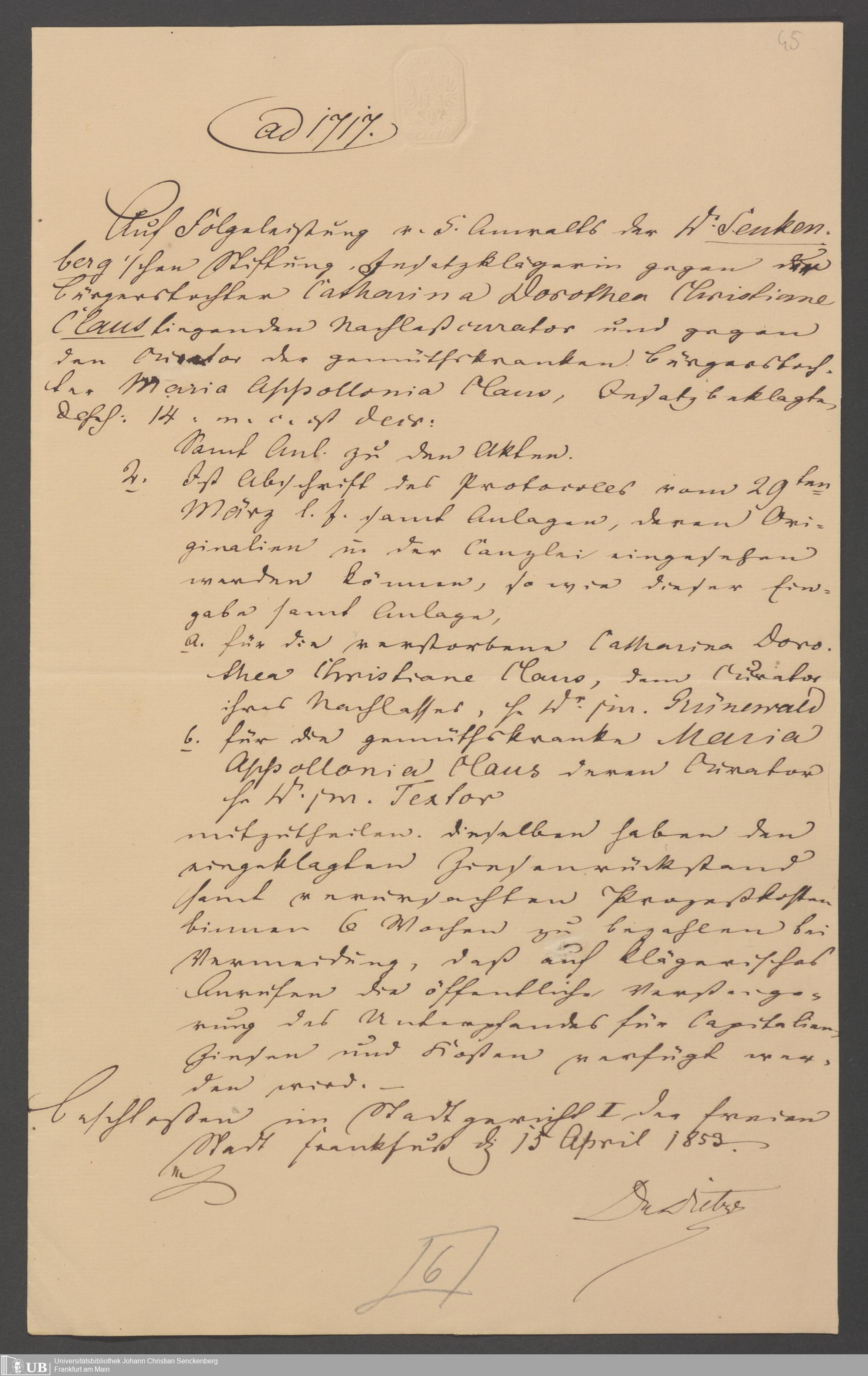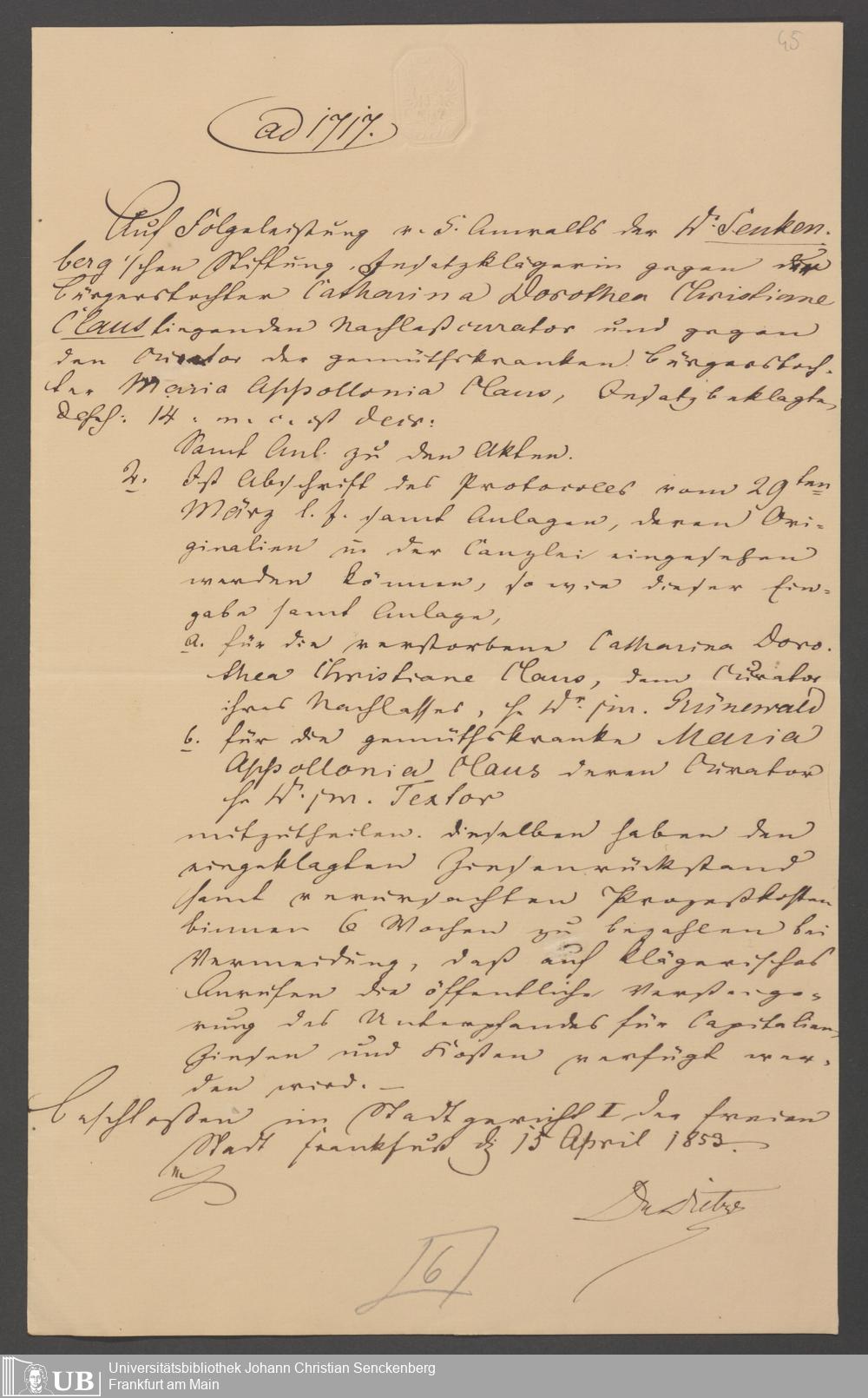 Nachlass Johann Christian Senckenberg