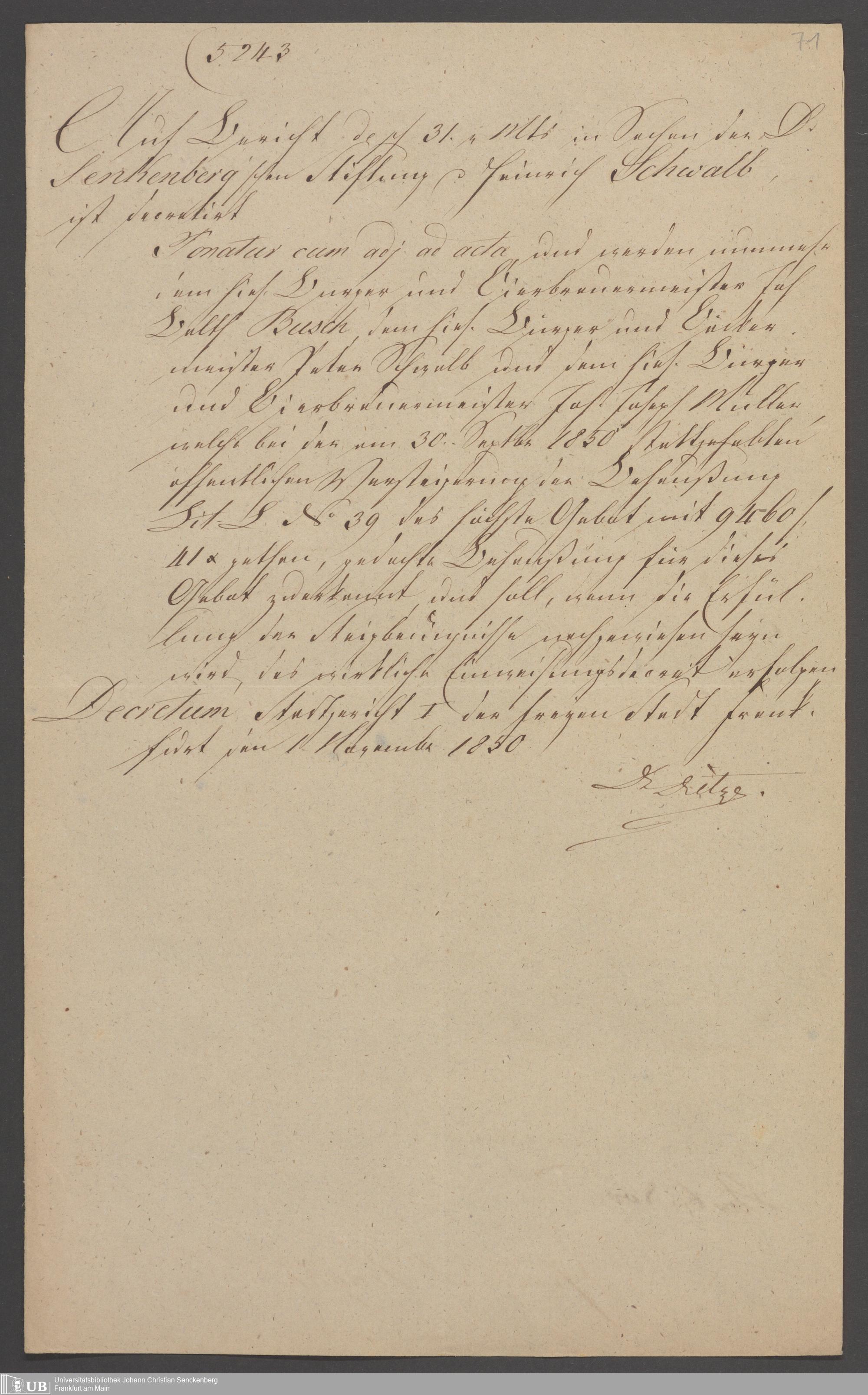Nachlass Johann Christian Senckenberg