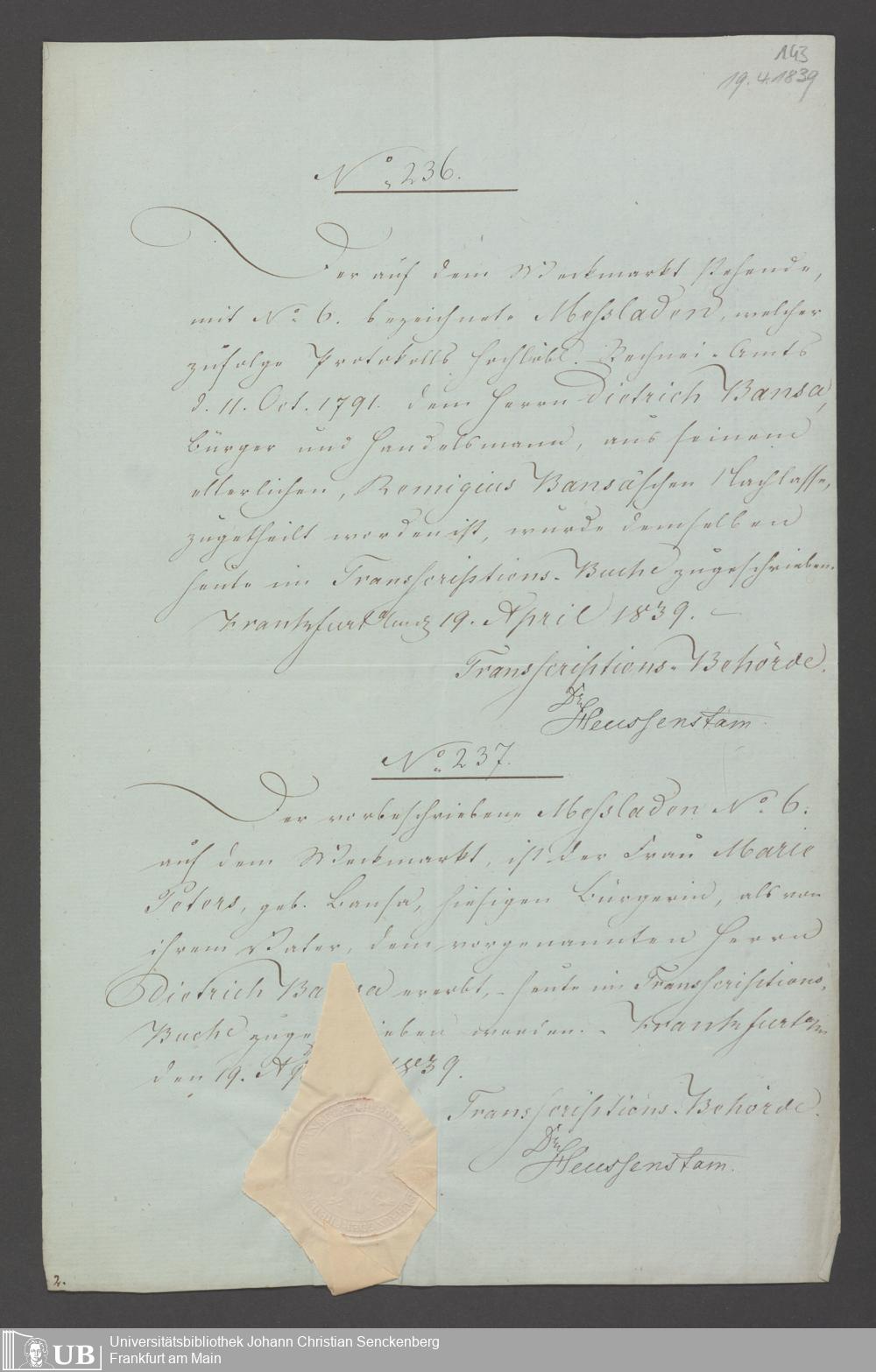 Nachlass Johann Christian Senckenberg
