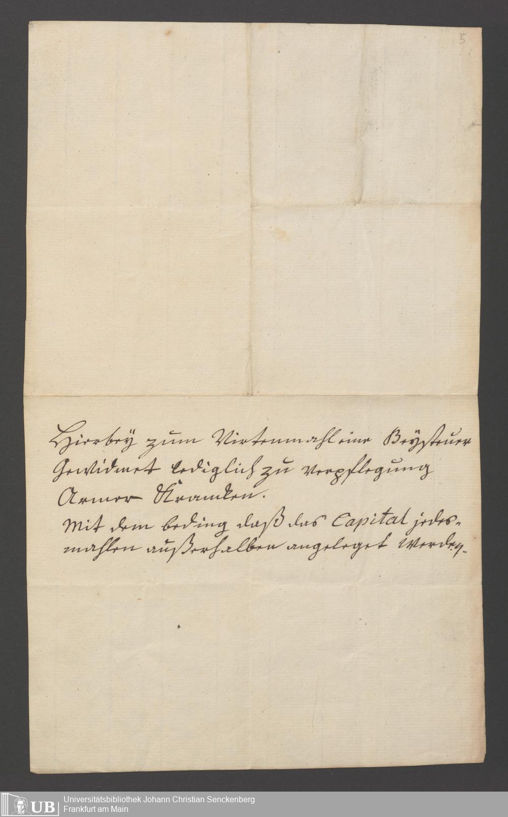 B 5 Dr. Senckenbergische Stiftung, 65 - Beisteuer zum Bürgerhospital durch einen Ungenannten