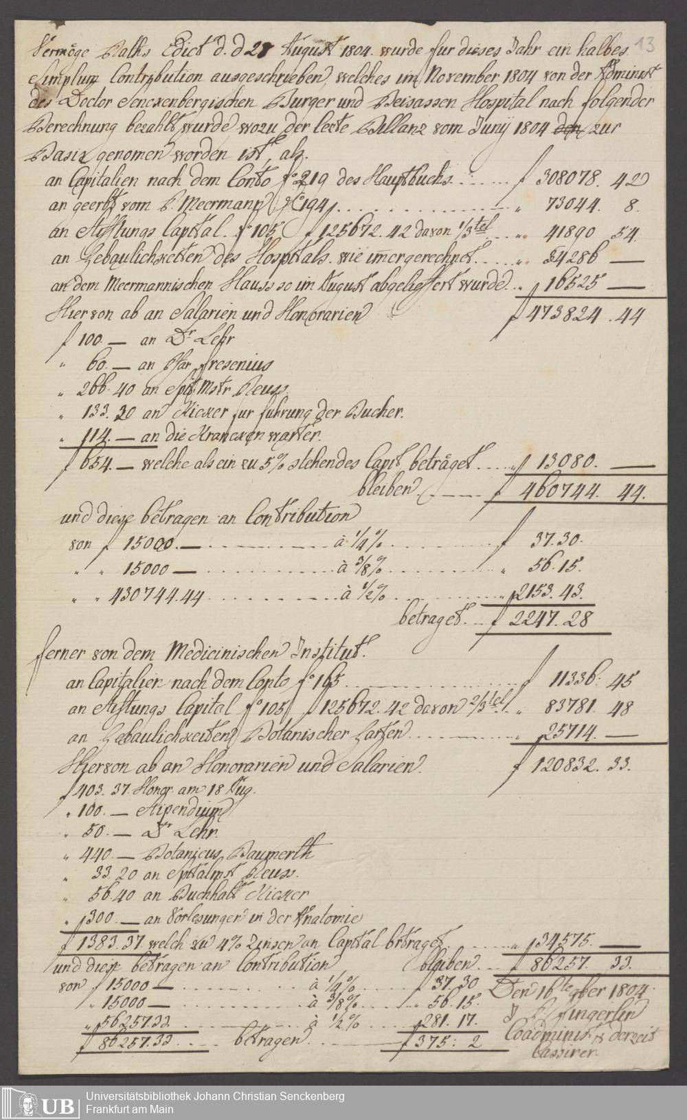 B 5 Dr. Senckenbergische Stiftung, 68 - Kontributionszahlungen der Senckenbergischen Stiftungen