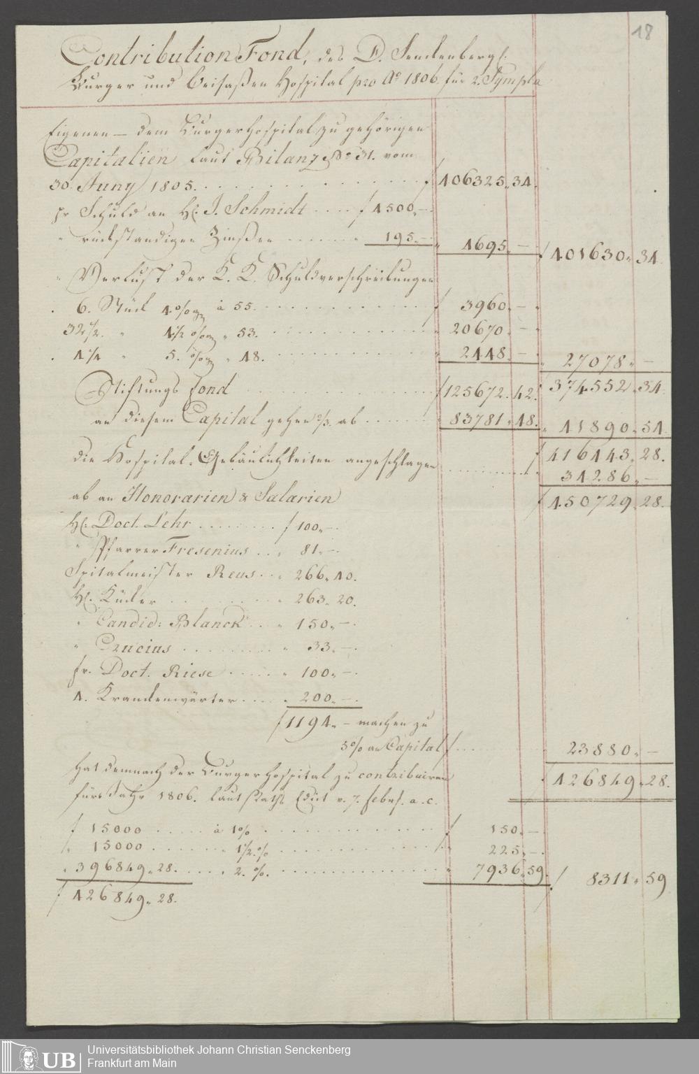 B 5 Dr. Senckenbergische Stiftung, 68 - Kontributionszahlungen der Senckenbergischen Stiftungen