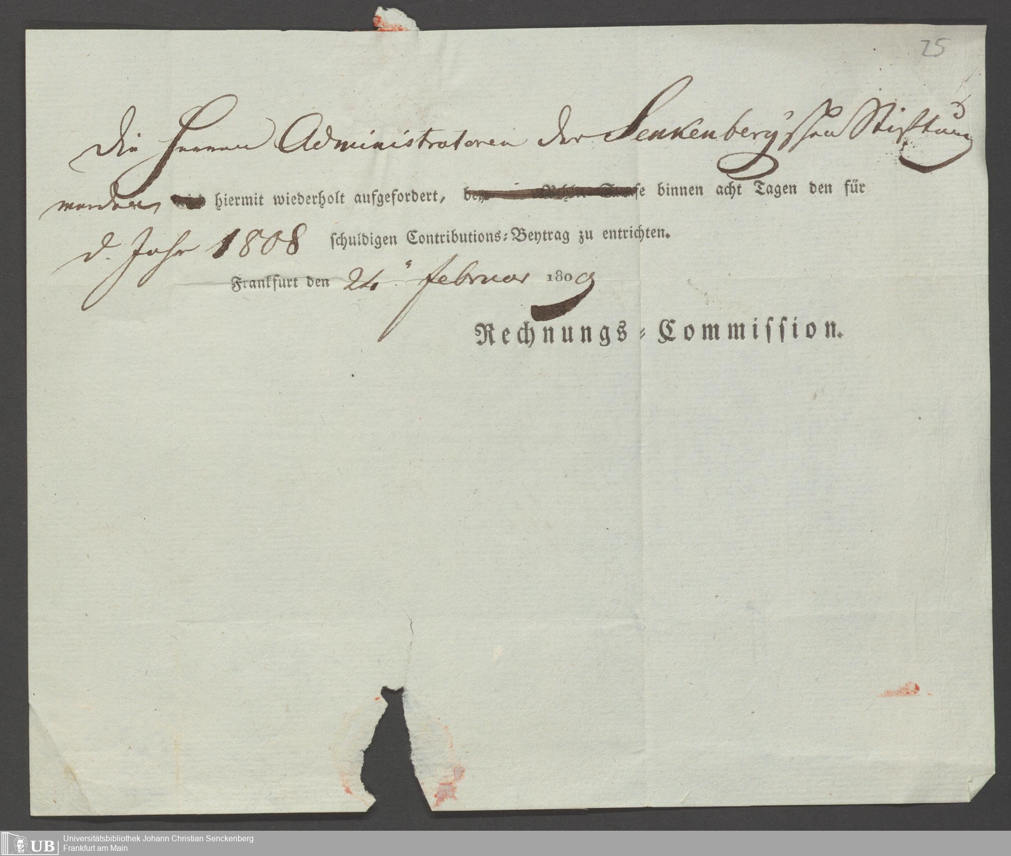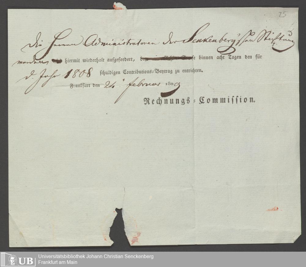 B 5 Dr. Senckenbergische Stiftung, 68 - Kontributionszahlungen der Senckenbergischen Stiftungen