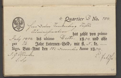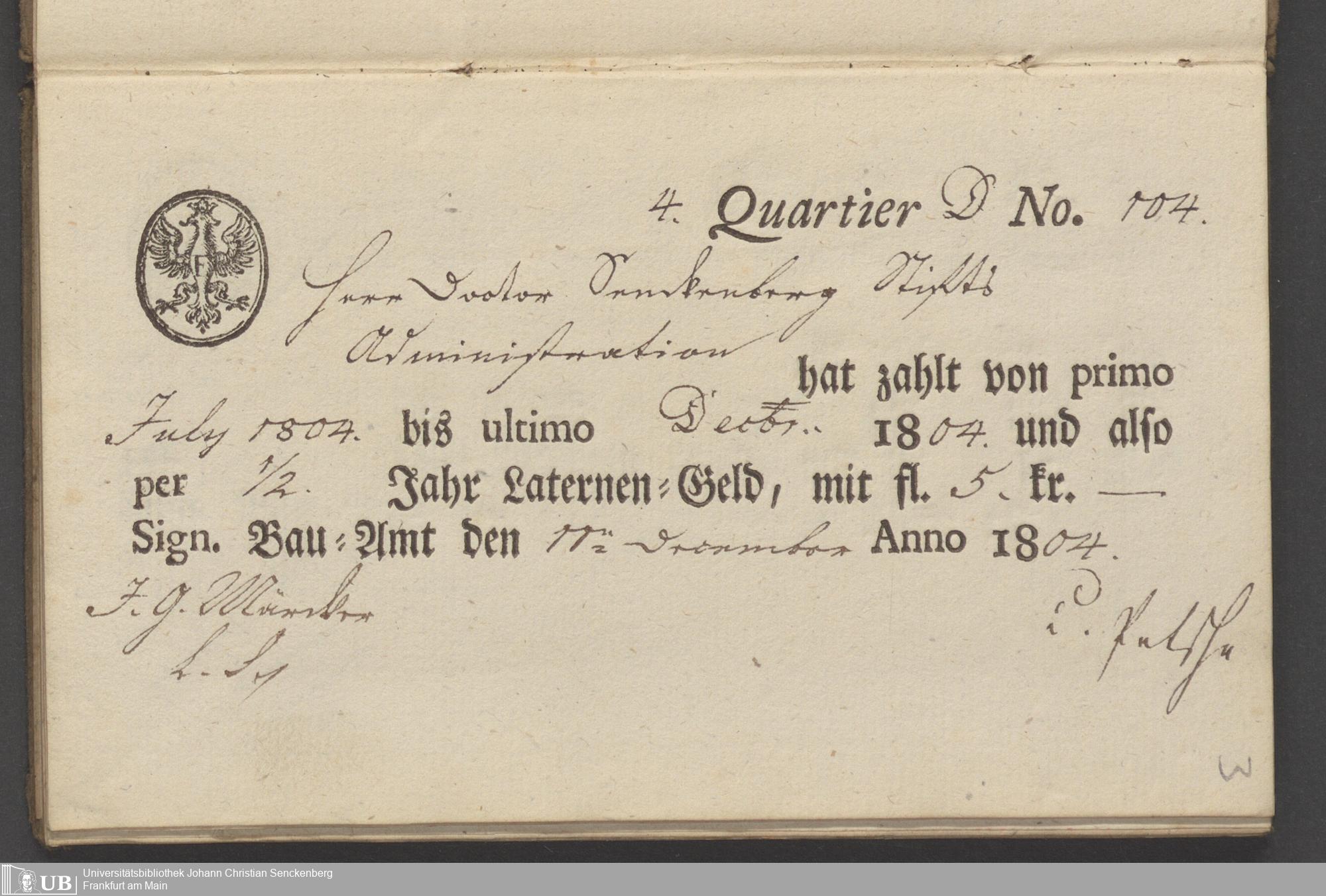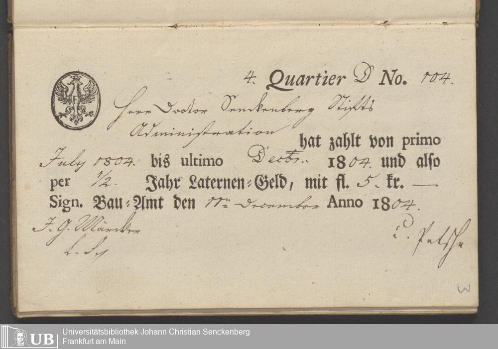 B 5 Dr. Senckenbergische Stiftung, 70 - Quittungsbuch der Senckenbergischen Administration über Laternengeld