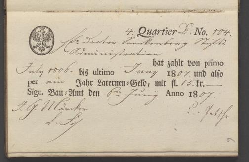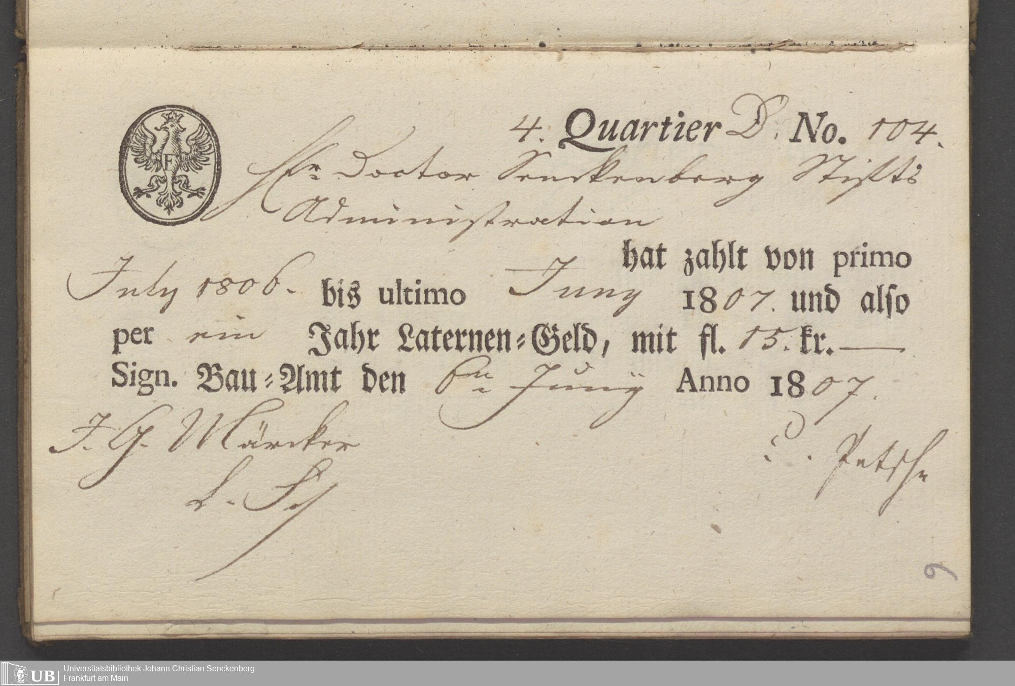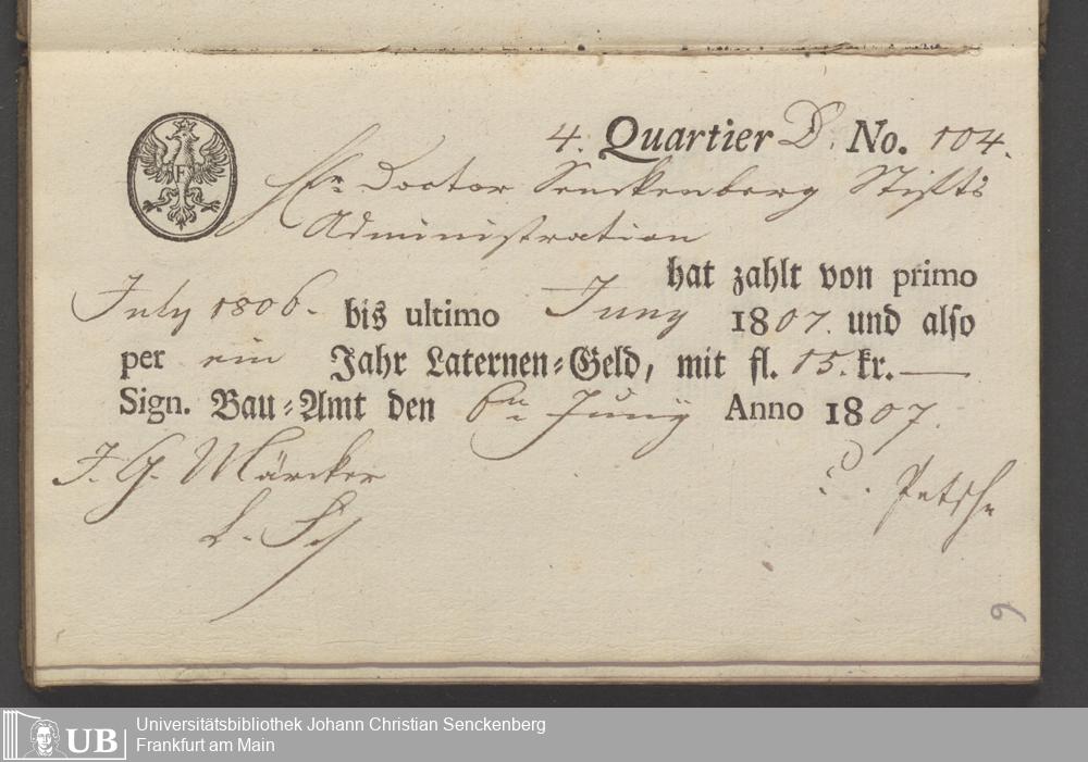 B 5 Dr. Senckenbergische Stiftung, 70 - Quittungsbuch der Senckenbergischen Administration über Laternengeld